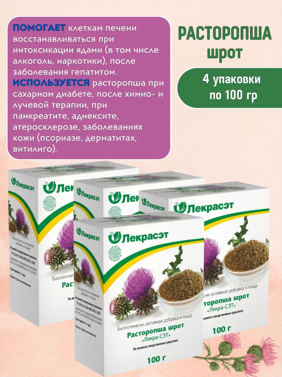 Расторопша шрот очищение и защита печени 4 уп по 100гр