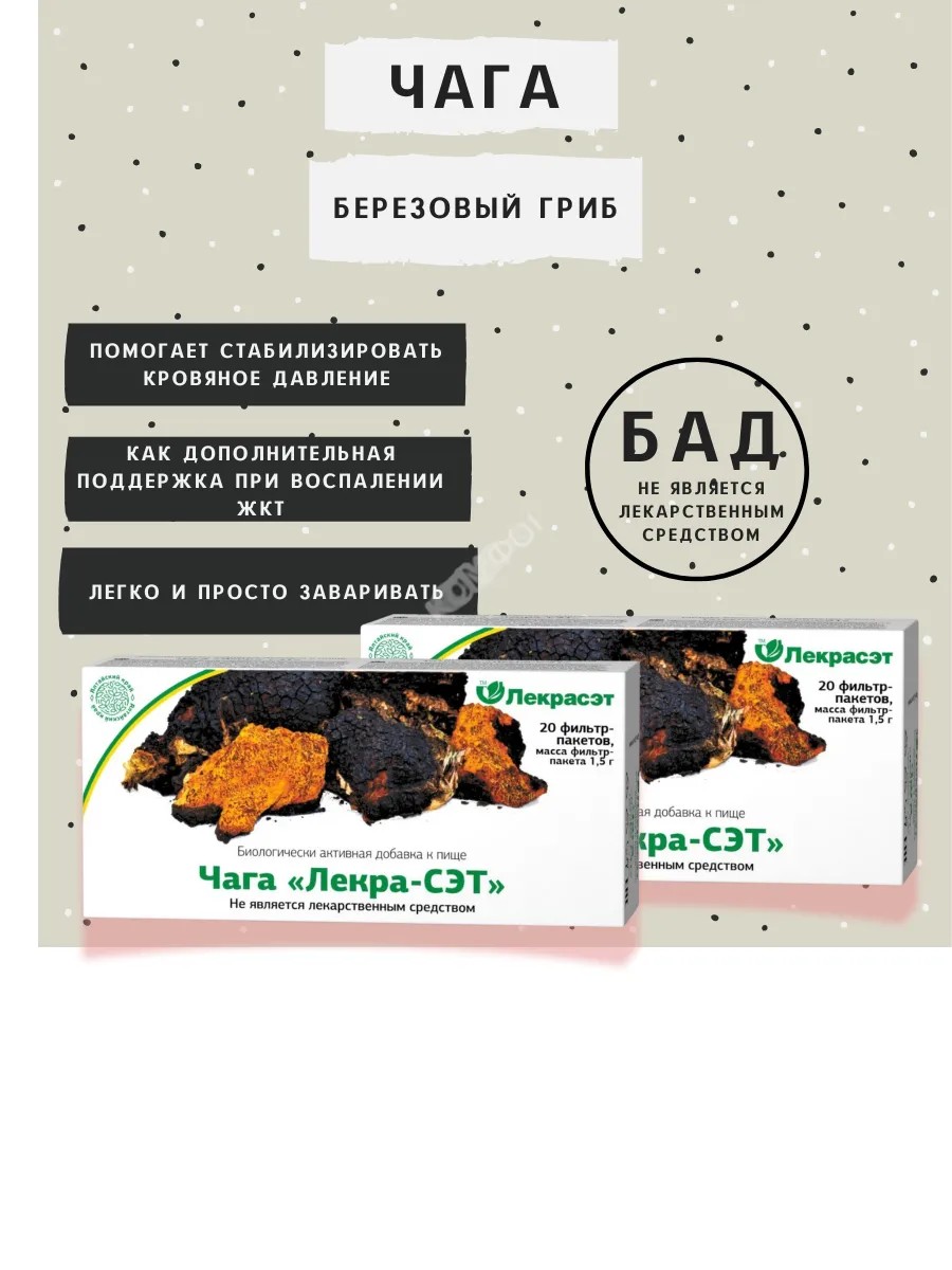 ЛЕКРАСЭТ Чага березовый гриб для иммунитетa 40 пакетиков