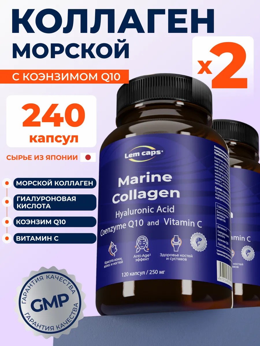 Гидролизованный рыбный коллаген с высокой биодоступностью. Anti-Age эффект - замедление процессов старения. Комплекс морской коллаген, гиалуроновая кислота, коэнзим Q10 и витамин С Lemcaps способствует повышению тонуса и упругости кожи, разглаживанию мелких морщин и глубокому увлажнению кожи. Улучшению состояния волос и ногтей, замедлению процессов старения. Укреплению костной ткани, улучшению подвижности суставов, укреплению связок и сухожилий, восстановлению хрящевой ткани.