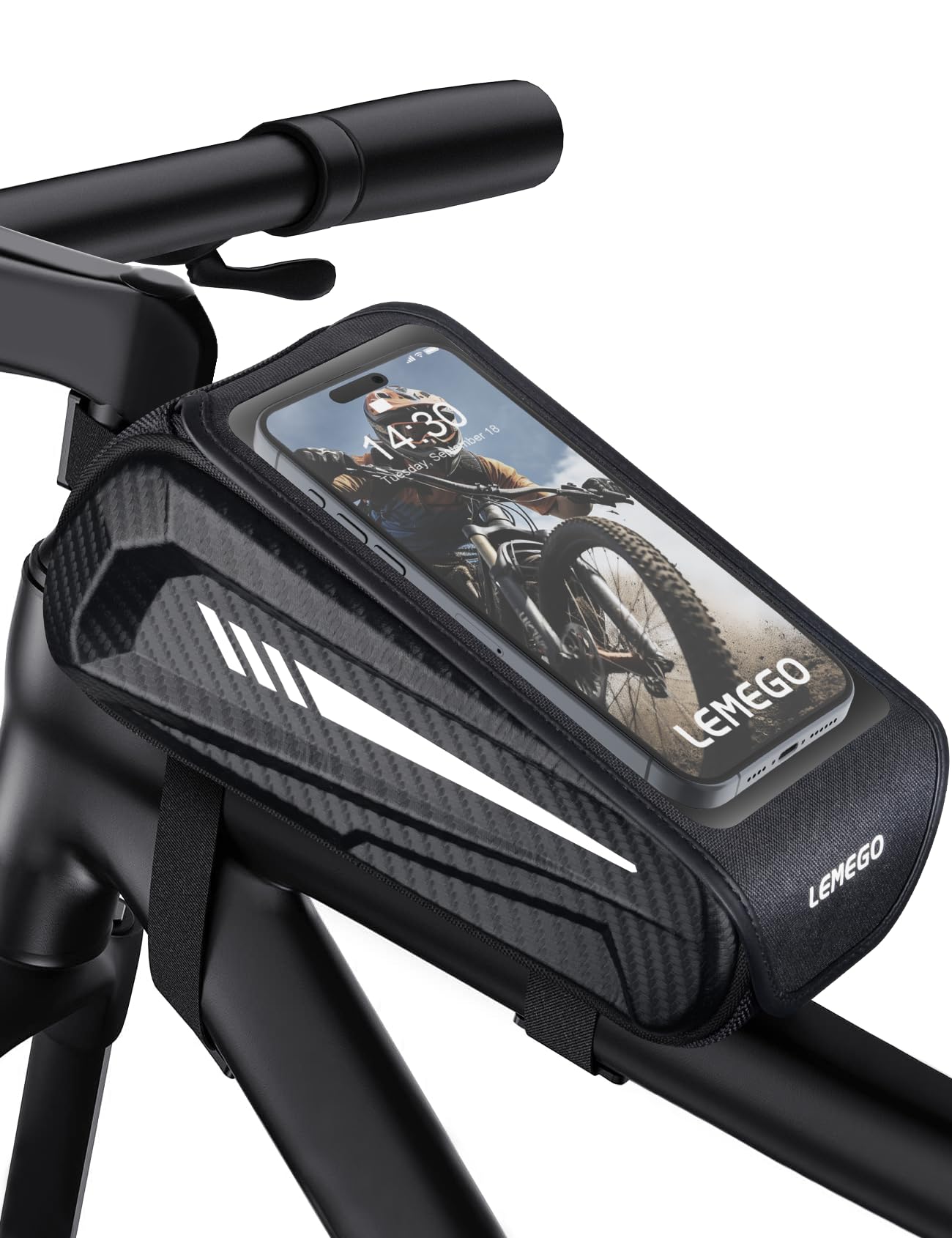 Suitable for telephones up to 6.7 inches - compatible with iPhone 14 15 Pro Max, Samsung Galaxy S23 S24, Huawei P30 P40 Pro, Huawei Nova 8, Xiaomi 13 14 Pro etc. Width compatibility - The upper part is oneCell phone pocket, suitable for smartphones under 6.7 inches.The thin and transparent TPU film makes it easier to touch the screen and 6 round holes make heat discharge easier from the phone.Easy to fasten - there are two nylon bands on the bottom of the top tube ash, which are suitable for different sizes of bicycle top pipes.The bicycle cell phone holder can not only be attached to the bike, but also on the motorcycle.Creative specifically - the zippers run lightly and the bag can be opened well with just one hand.No more stopping to unpack your bike!In the lower part of the bag, 2 mains compartments are attached to the sides.Credit cards and bus cards can be kept there.Waterproof 1.0l - splash -protected, but the bag is already and with the use of the rain cover a small rain shower is no problem.With 1.0 liters, it offers space for small personal objects such as power banks, key rings and watches.Robust Cool - The side shell from Eva is harder and more fall -proof than the bicycle bags made of other materials.It is a good choice for mountain biking.It has reflective strips on both sides that can warn vehicles on both sides during night trips.Geeignet für Telefone bis zu 6,7 Zoll - Kompatibel mit iPhone 14 15 pro max, Samsung Galaxy S23 S24, Huawei P30 P40 Pro, Huawei Nova 8, Xiaomi 13 14 Pro usw. Breite Kompatibilität - Der obere Teil ist eine Handytasche, geeignet für Smartphone unter 6,7 Zoll. Die dünne und transparente TPU-Folie erleichtert das Berühren des Bildschirms und 6 runde Löcher erleichtern die Wärmeableitung vom Telefon. Einfach zu befestigen - Am Boden der Oberrohrasche sind noch zwei Nylonbänder, die geeignet für verschiedene Größen von Fahrradoberrohren. Die Fahrrad Handyhalterung lässt sich nicht nur am Fahrrad, sondern auch am Motorrad anbringen. Kreativ Speziell - Die Reißverschlüsse laufen leicht und die Tasche lässt sich gut mit nur einer Hand öffnen. Kein Anhalten mehr, um Ihr Fahrrad auszupacken! Im unteren Teil der Tasche sind 2 Netzfächer an den Seiten angebracht. Dort können Kreditkarten und Buskarten aufbewahrt werden. Wasserdicht 1,0L - Spritzwassergeschützt ist die Tasche aber schon und mit Verwendung der Regenhülle ist ein kleiner Regenschauer kein Problem. Mit 1,0 Litern bietet er problemlos Platz für kleine persönliche Gegenstände wie Powerbanks, Schlüsselanhänger und Uhren. Robust Cool - Die Seitenschale aus EVA ist härter und sturzsicherer als die Fahrradtaschen aus anderen Materialien. Zum Mountainbiken ist sie eine gute Wahl. Sie verfügt auf beiden Seiten über reflektierende Streifen, die bei Nachtfahrten beidseitig fahrende Fahrzeuge warnen können.LEMEGO Rahmentasche wasserdichte Fahrradtasche mit Regenschutzhülle Reflektorstreifen Handytasche für Smartphone bis zu 6,7 Zoll 1L Oberrohrtasche für Fahrrad Motorrad