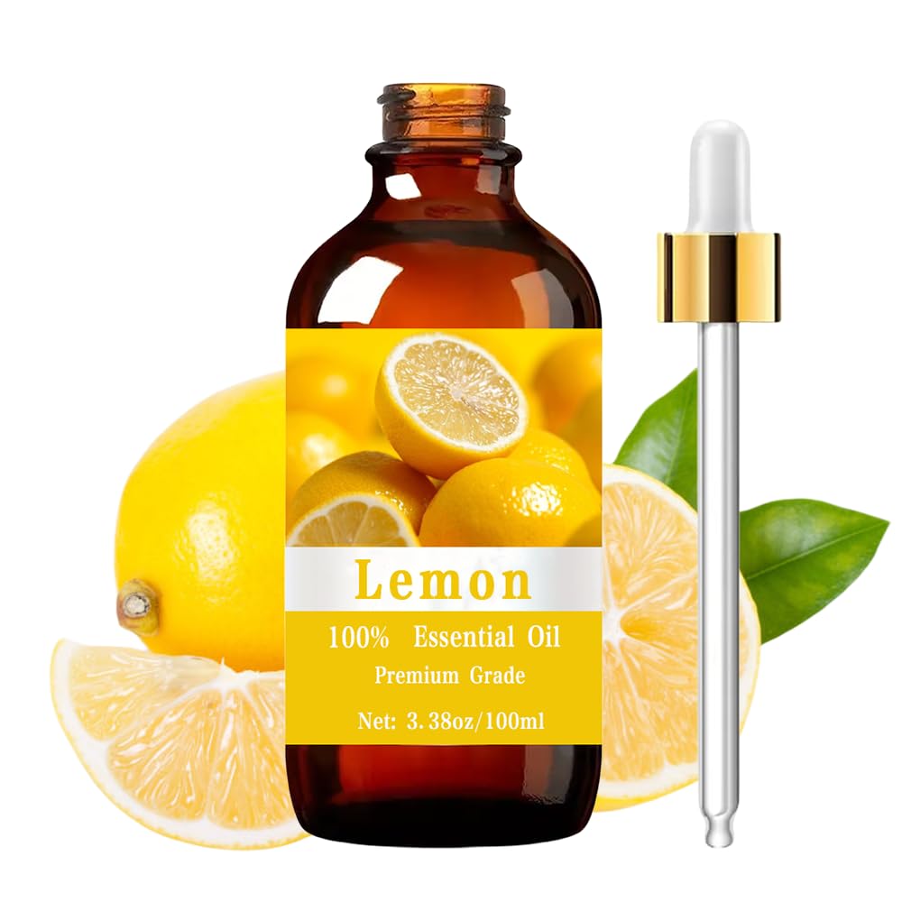 LONG-LASTING: 24-month shelf life when properly stored, making it ideal for regular use in personal care and aromatherapy applications. PROTECTIVE PACKAGING: Amber glass bottle design helps preserve the oil's potency and therapeutic properties during storage and use. NATURAL FORMULA: Pure lemon extract provides natural moisturizing and nourishing properties for comprehensive personal care routines for both men and women. VERSATILE USES: Perfect for aromatherapy, massage therapy, nail care, hair care, skin care, and use in diffusers or humidifiers for natural refreshing fragrance. PREMIUM QUALITY: 100 pure lemon essential oil in a generous 3.38 fl oz (100ml) amber glass bottle with dropper, ensuring maximum potency and freshness.