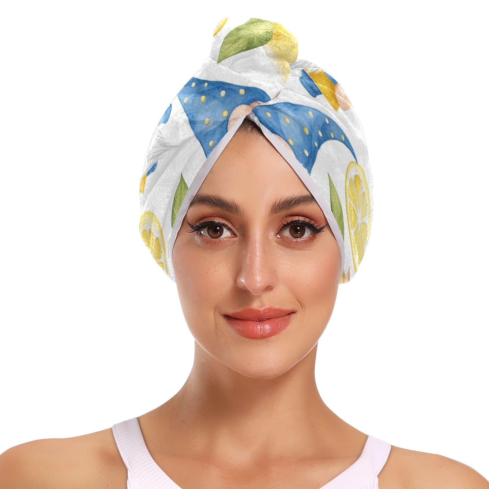 Lemon Ice Cream Gnomes Hair Towel 2 Pack Super Absorbent Hair Drying Towel Quick Dry Hair Turbans Head Towel with Button Twisty Wrap for Women Girls