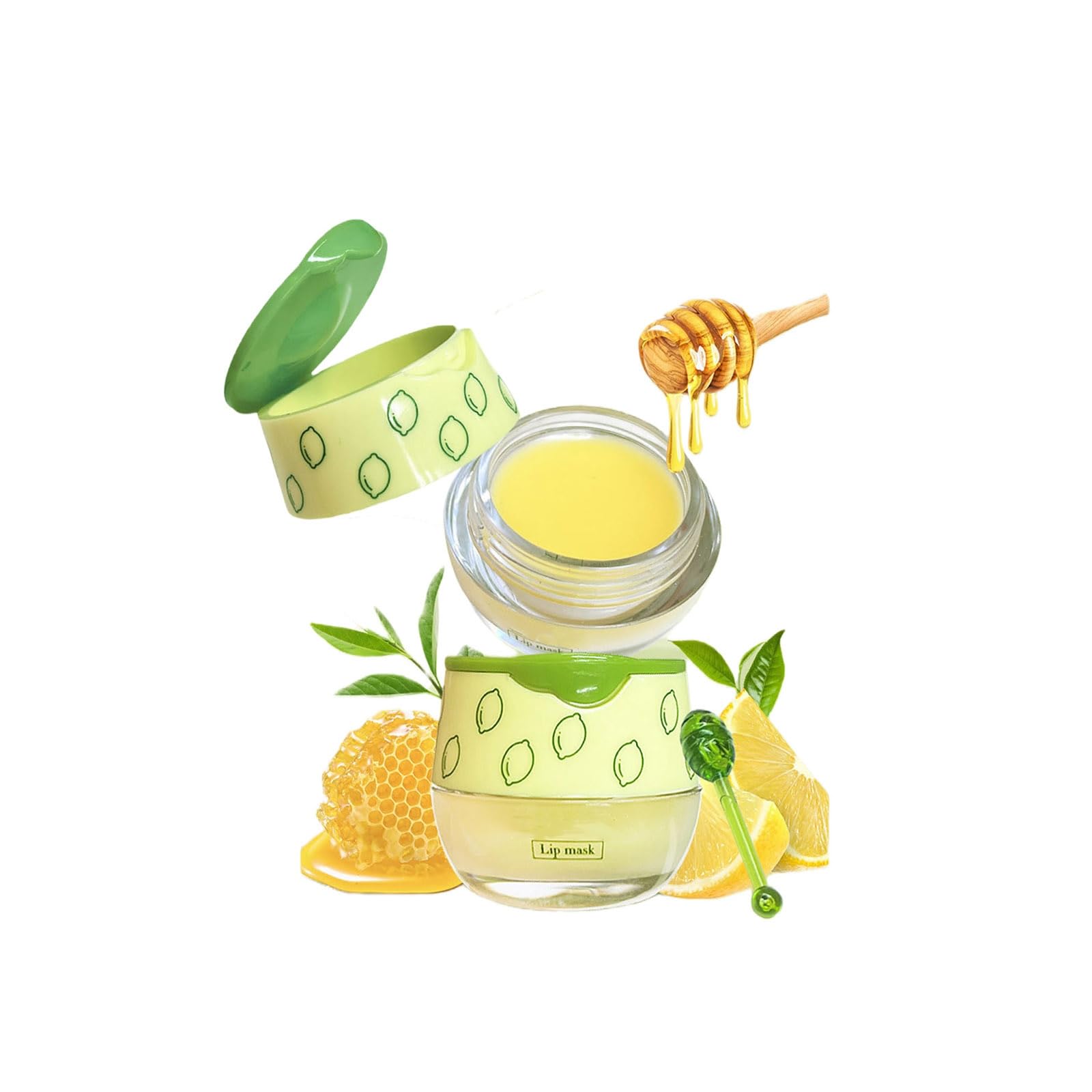 Lemon Lip Mask Overnight 2 PCS Bee Lip Balm Honey Pot With Vitamin C Day and Night Moisturizer Long-Lasting Natural Balm Treatment for Dry Chapped Dull Lips Reduce Fine Lines