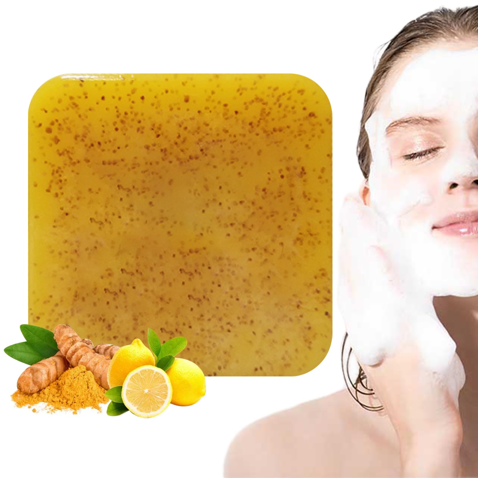 Lemon Turmeric Kojic Soap, 2.4x2.4x1" Moisturizing Lemon Turmeric Soap Bar for Hyperpigmentation, Dark Spots Natural Organic Kojic Soap for Face Back Legs Body Description: Our lemon turmeric kojic soap, a moisturizing and cleansing soap bar that targets hyperpigmentation and dark spots. Made with natural and organic ingredients such as lemon, turmeric, and kojic acid, it provides a gentle and effective solution for skincare. With a proper and moderate size, it is easy to hold and use, ensuring convenience and comfort during each application. This versatile soap can be used on the face, back, legs, and body, providing a comprehensive skincare solution. It is gentle and suitable for most skin types, as it is free from irritating chemicals and artificial fragrances. Elevate your skincare routine with our lemon turmeric kojic soap and enjoy a brighter, more even complexion. Features:. Lemon Turmeric Kojic Soap. -Color: Yellow. -Material: Lemon, Turmeric, Kojic Acid. -Size: about 6x6x2.5cm/2.36x2.36x0.98inch. Note: Manual measurement, please allow slight errors on size. The colors may exist slight difference due to different screens. Package Including 1 x Lemon Turmeric Kojic Soap.Proper Size for Easy Handling: With a size of about 6x6x2.5cm/2.36x2.36x0.98inch, this turmeric soap bar is designed to be proper and moderate in size. It is easy to hold and use, ensuring convenience and comfort during each application. Suitable for Most Skin Types: This soap is gentle and free from irritating chemicals and artificial fragrances. It is suitable for daily use and is less likely to cause adverse reactions, making it suitable for most skin types. Efficient Skin Care: This lemon turmeric kojic soap is not only moisturizing and cleansing but also specifically formulated to target hyperpigmentation and dark spots. It helps even out skin tone and reduce the appearance of blemishes. Multi-Use: This lemon turmeric kojic soap is versatile and can be used on various parts of the body. Whether it's for the face, back, legs, or body, it provides a comprehensive skincare solution, making it suitable for all-over use. Natural and Organic: Made with the goodness of lemon, turmeric, and kojic acid, this soap is crafted with natural and organic ingredients. It provides a gentle and effective solution for skincare, without harsh chemicals or artificial additives.