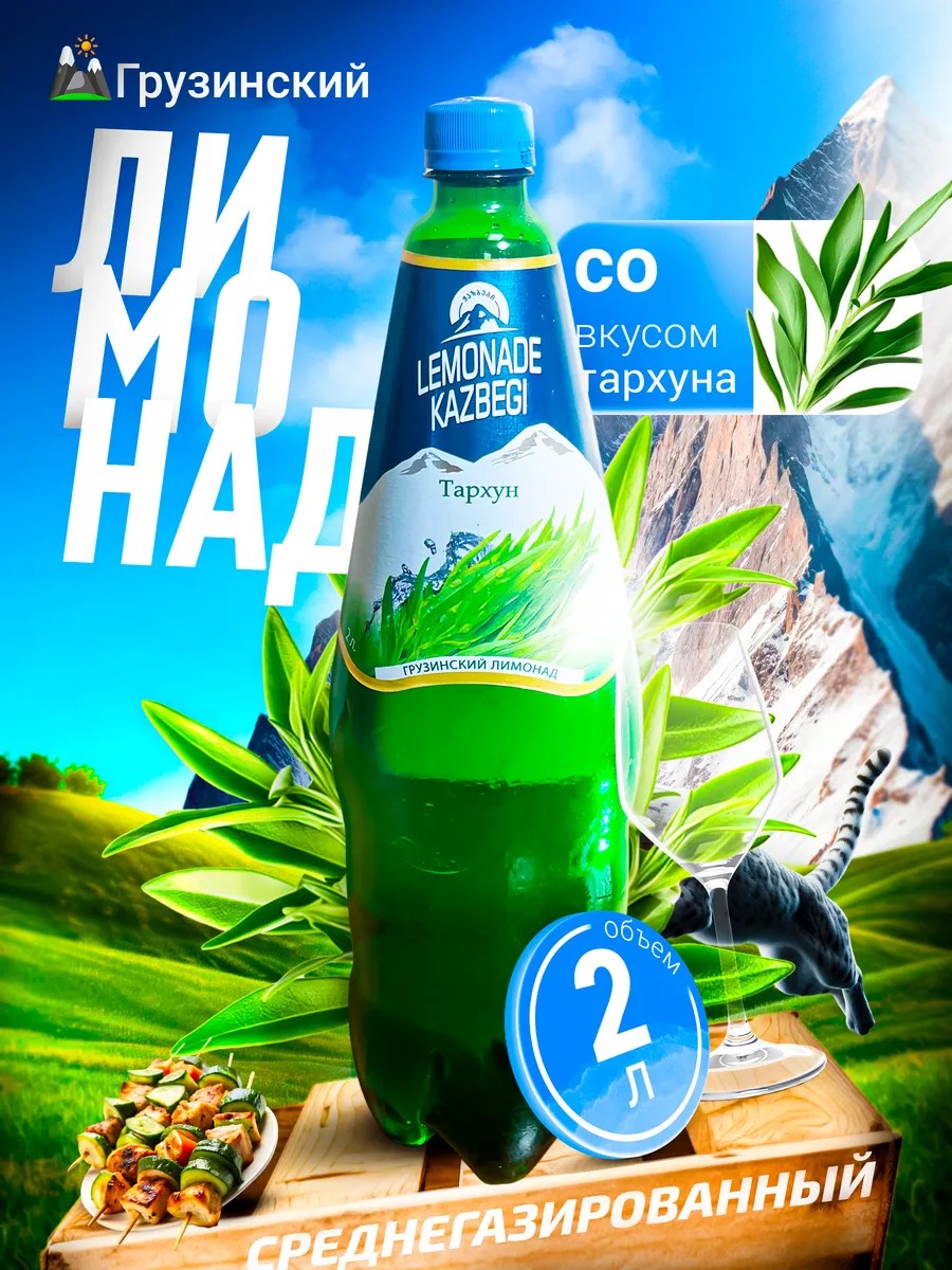 Лимонад Kazbegi тархун 2 л среднегазированный