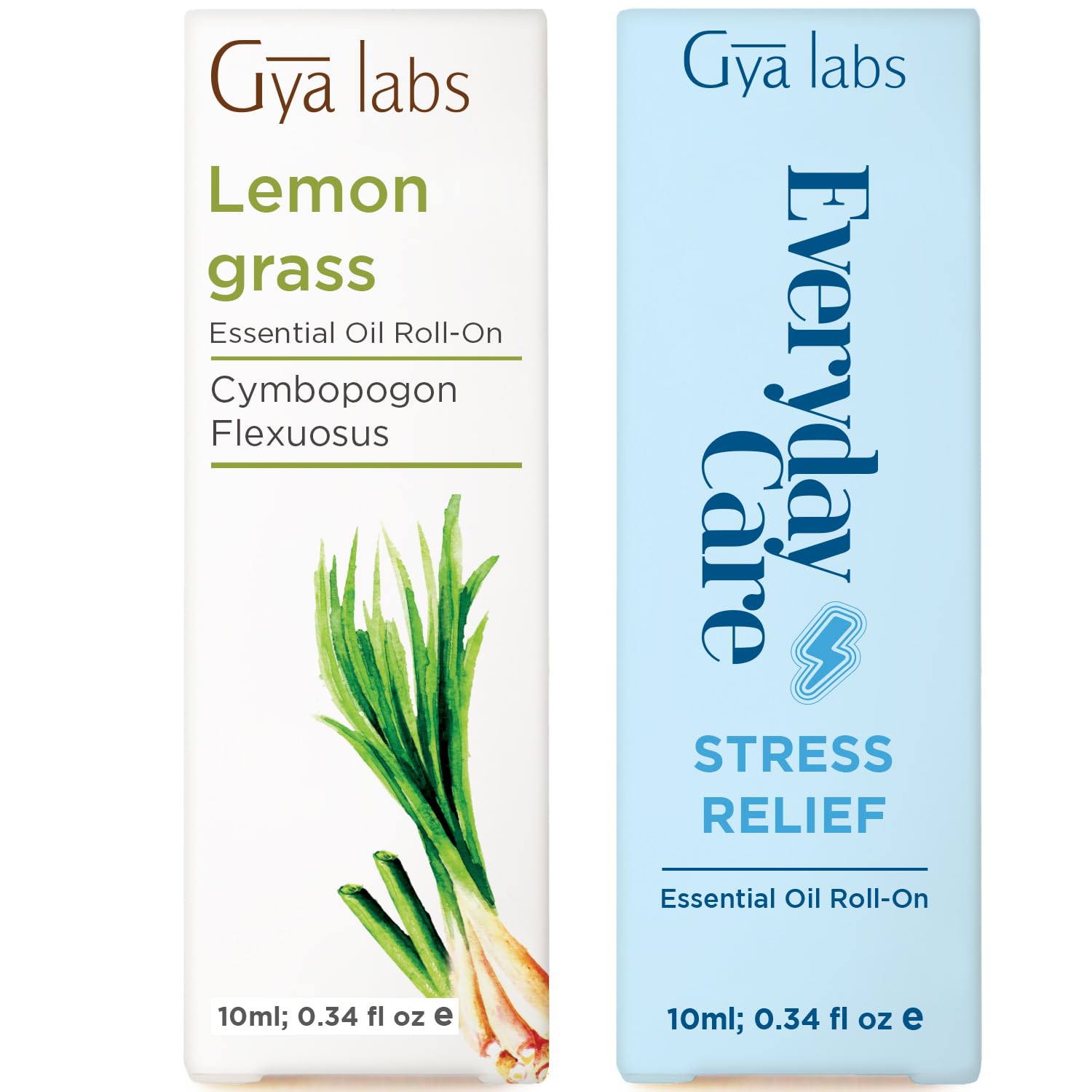 Lemongrass & Stress Relief Roll On Set - Essential Oils Aromatherapy Roll On with Essential Oil Set - 2x0.34 fl oz - Gya Labs