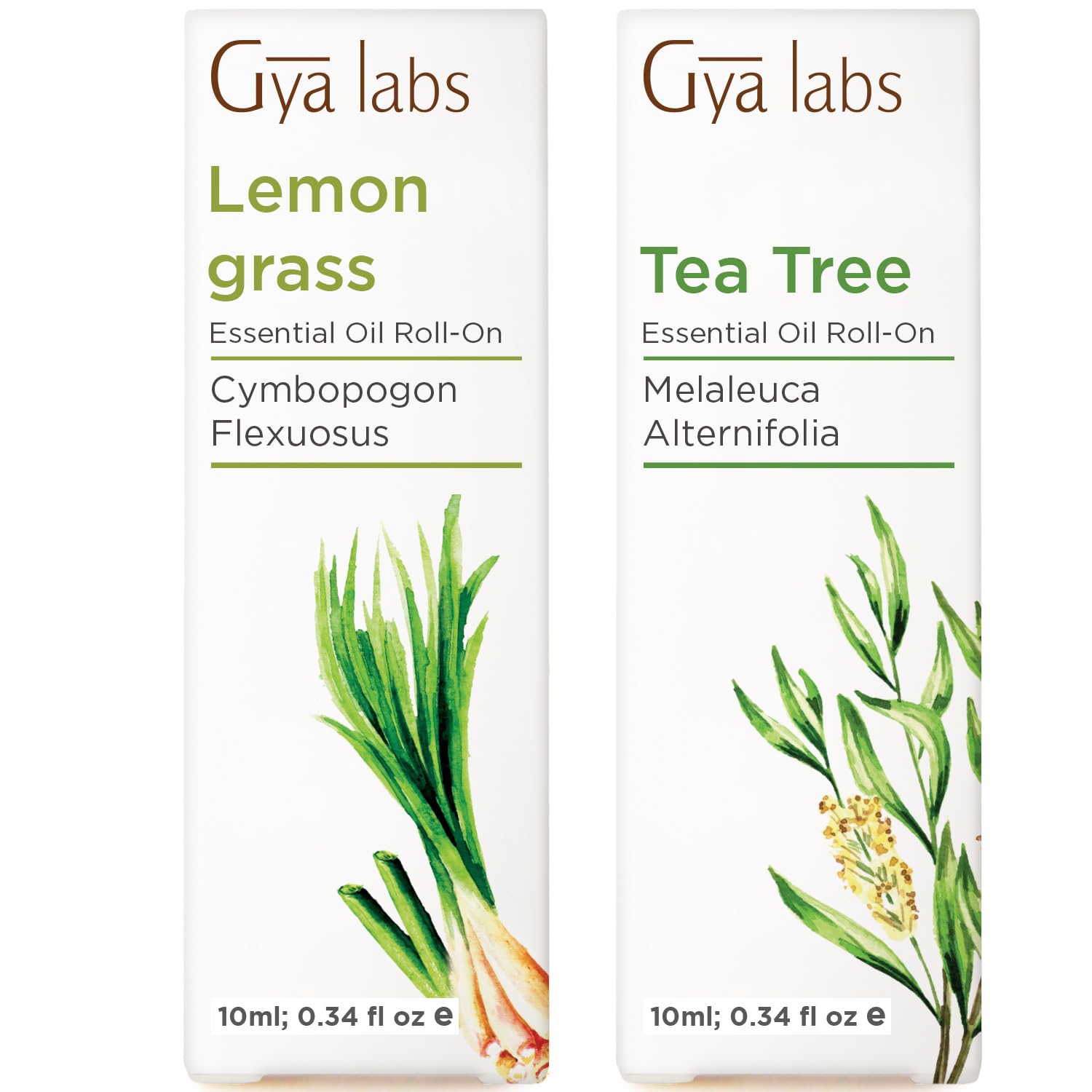 Lemongrass & Tea Tree Roll On Set - Essential Oils Aromatherapy Roll On with Essential Oil Set - 2x0.34 fl oz - Gya Labs