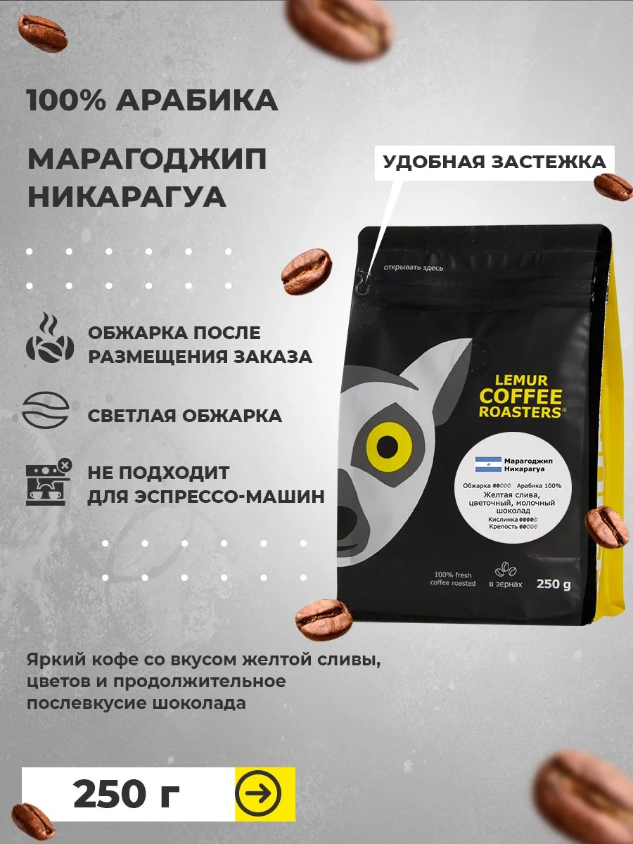Lemur Coffee Roasters Кофе в зернах Марагоджип Никарагуа 250 г