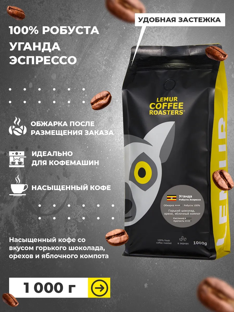 Lemur Coffee Roasters Кофе в зернах Уганда робуста Эспрессо 1000 г