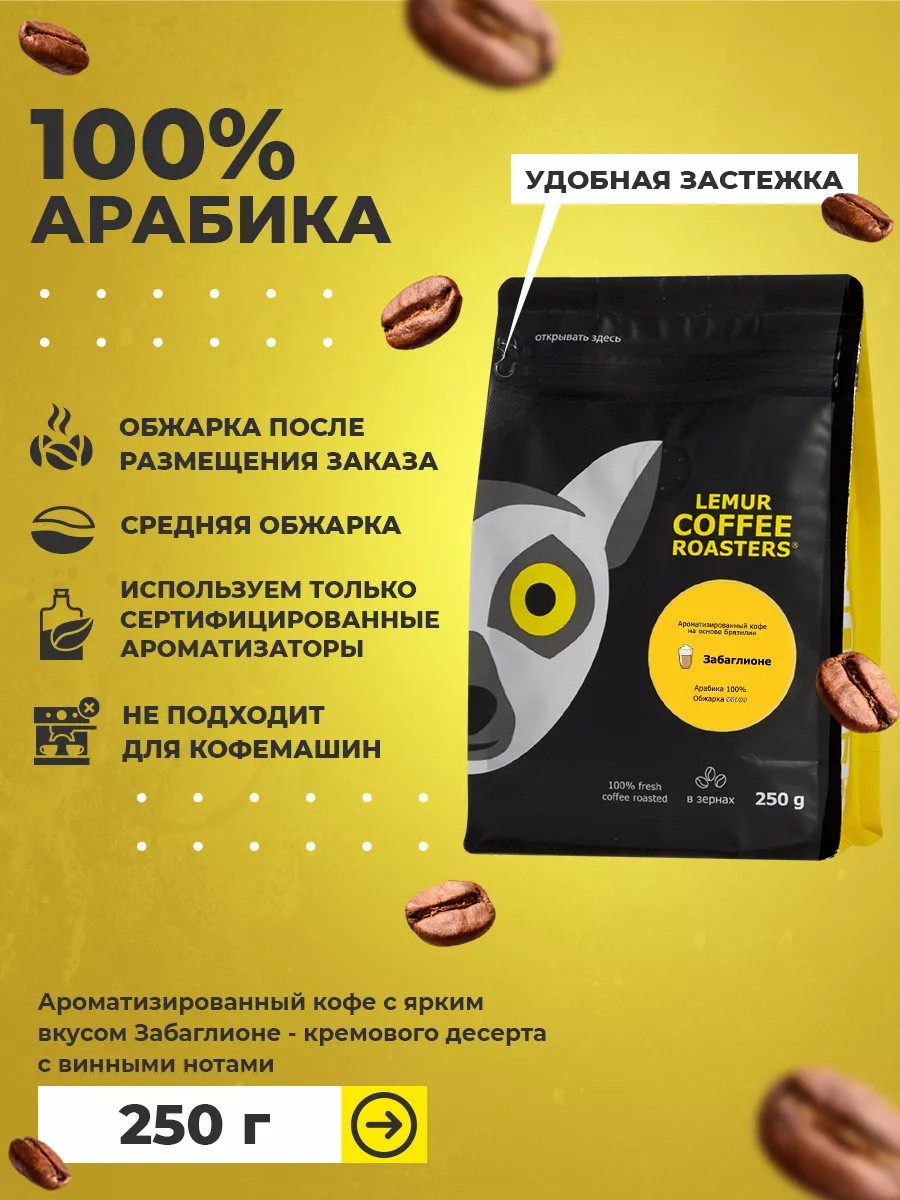 Lemur Coffee Roasters Кофе в зернах со вкусом Забаглионе 100 % арабика 250 г