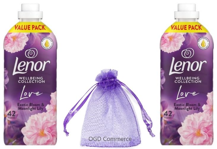 With Lenor Exotic Bloom Moonlight Lily you will Feel the irresistible power of love. Seductive, heady notes of white ginger lily and musk will mesmerize your senses. With a touch of essential oils. Lenor fabric conditioner provides softness, freshness and protection for the clothes you love and also helps with less wrinkling and easier ironing. Fabric conditioner that gives a premium long-lasting fragrance, with fresh sheets for up to a whole week (noticeable Lenor freshness for up to 1 week). Our Gift For You - Organza bag. Using 9 x 7 x 0.1 cm mini bag are made of special sheer organza, which are very durable, touch softly and smoothly. PACKING MAY VARY.