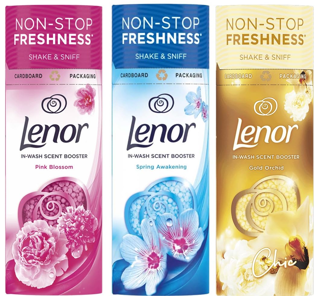 Lenor In-Wash Scent Boosters provides up to 12 weeks of boosted freshness (in storage), so your clothes stay fresher for longer. That's because the beads go in at the start of the wash, allowing more scent to slowly infuse into your fabrics as they wash. Can be used on all colors, fabrics, and loads, even in cold wash. Personalise the scent intensity by choosing the quantity of beads you want to use. Pour beads directly into the empty drum then add detergent, clothes, and fabric conditioner as usual. An irresistible freshness boost for even more of the scent you love. INGREDIENTS Perfumes, Alpha-Isomethyl Ionone, Citronellol, Hexyl Cinnamal, Hydroxyisohexyl 3-Cyclohexene Carboxaldehyde, Limonene, Linalool DIRECTIONS Always read the product information before use. Pour beads directly into the empty drum before your laundry. Personalize the scent intensity by choosing the quantity of beads you want to use. Dose using the cap then POUR directly into the washing machine drum. Standard dose 13.5 g (for reference, full cap capacity is 67 g). Do not put cap in drum. Do not put in your softener dispenser or tumble dryer. Always close after use keep out of reach of children. Wash hands after handling. See more