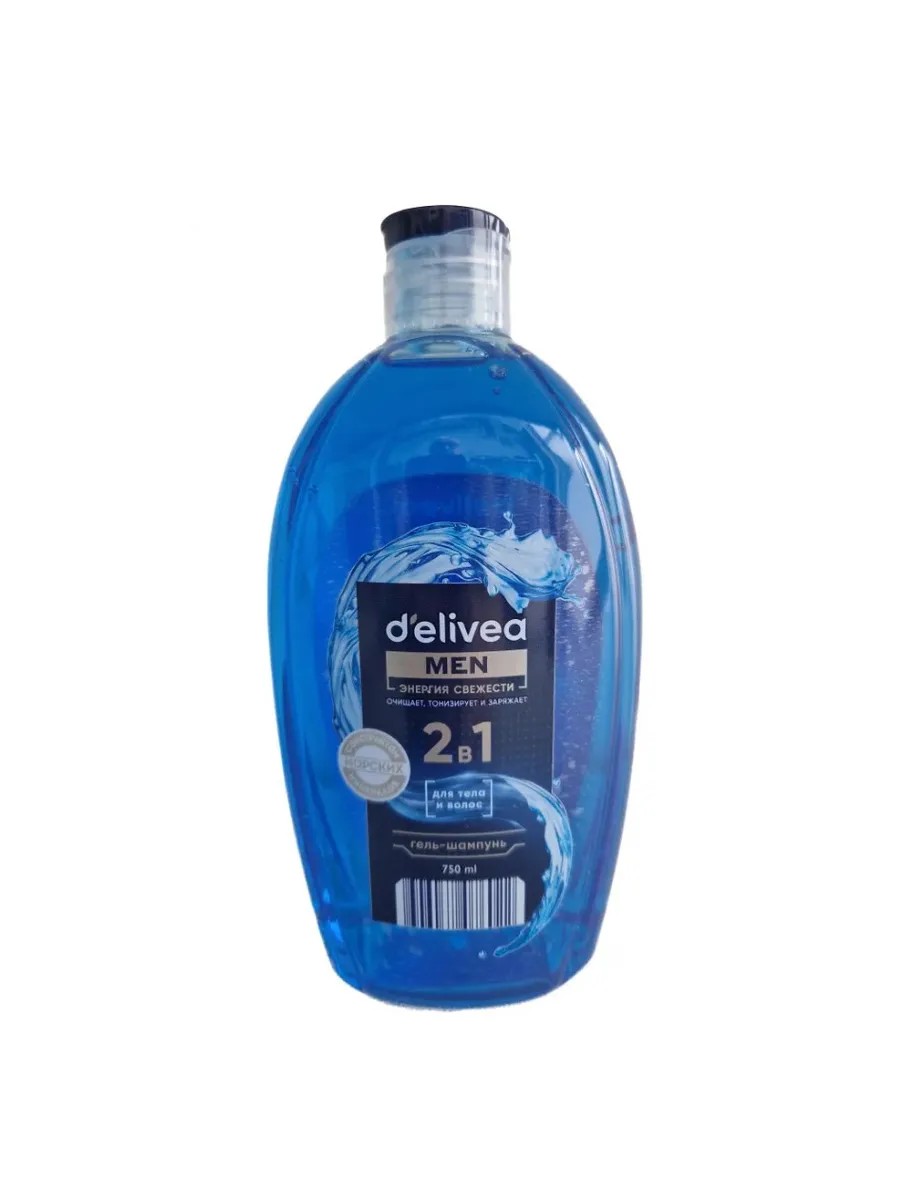 Мужской шампунь-гель для душа Delivea Energy Freshness 2 in 1 — это удобное и практичное средство, объединяющее два полезных эффекта в одном флаконе.