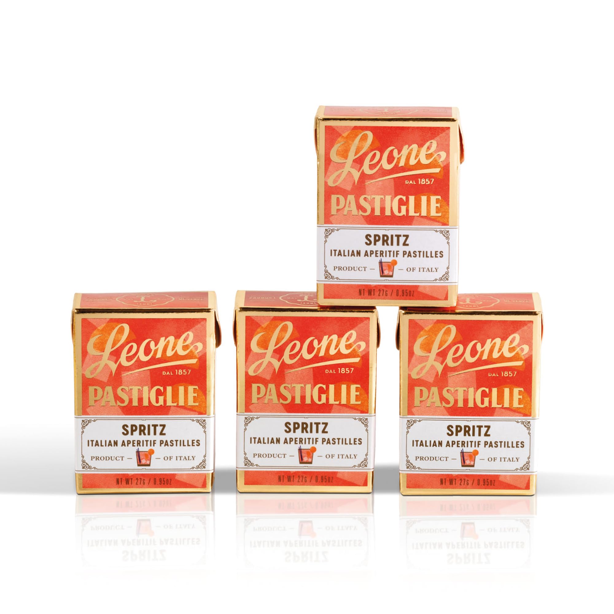 Leone since 1857 - PASTIGLIE Leone Spritz - Bonbondose Leone - Beybons with spray taste gluten -free and vegan - 4 doses of 27g (4 x 27g) each)