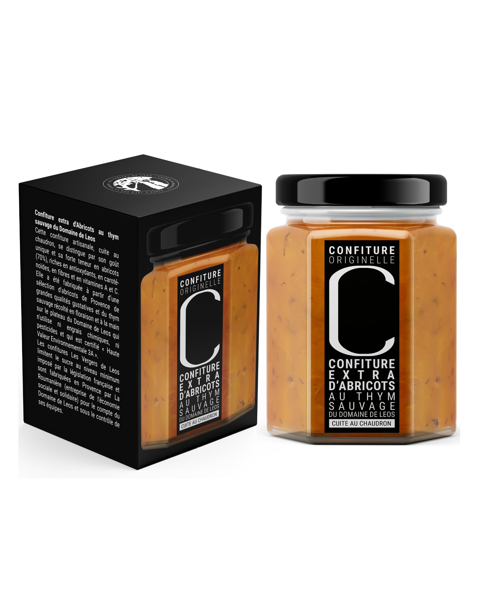 A HANDCRAFTED JAM, COOKED IN A CAULDRON, MADE WITH 70 FRUIT FROM THE BLEND OF A SELECTION OF PROVENCE APRICOTS AND THYME FROM THE DOMAINE DE LEOS. This handcrafted jam, cooked in a cauldron, is distinguished by its high apricot content and the unique and singular taste resulting from its successful combination with thyme from the DOMAINE DE LEOS. GASTRONOMIC PAIRINGS: Spreadable with or without butter, at breakfast on fresh country bread. Try it on toast too, you'll see it's delicious! It can also be enjoyed as an afternoon snack or with a meal with cheese, or even as a dessert ingredient or filling in cakes or tarts, or on crêpes, pancakes, brioche, and French toast. INGREDIENTS: Provence apricots, white cane sugar, thyme. Made with 70 fruit (70g per 100g of jam), well above the legal minimum required for "extra" jam (over 45 ). Under the supervision of the DOMAINE DE LEOS team, the jam is produced and jarred in Robion, just minutes from the farm, by La Roumanière (a social and solidarity economy enterprise). TERROIR HARVEST This jam is made from a selection of high-quality Provençal apricots and lavender from DOMAINE DE LEOS. Certified "High Environmental Value 3A" and in organic conversion, the farm uses neither chemical fertilizers nor pesticides.LEOS - Confiture Extra Abricot au Thym Sauvage - C DE LEOS - 323g avec étui - Cuite au Chaudron en Provence - 100 Artisanale Naturelle - 70 de Fruits - Sans Conservateur Sans ColorantDESCRIPTION DU PRODUIT UNE CONFITURE ARTISANALE, CUITE AU CHAUDRON, FABRIQUÉE AVEC 70 DE FRUITS À PARTIR DU MARIAGE D'UNE SÉLECTION D'ABRICOTS DE PROVENCE ET DU THYM DU DOMAINE DE LEOS CARACTÈRE Cette confiture artisanale, cuite au chaudron, se distingue par sa forte teneur en abricots et par le goût unique et singulier de son mariage réussi avec le thym du DOMAINE DE LEOS. ACCORDS GASTRONOMIQUES Produit à tartiner avec ou sans beurre, au petit déjeuner sur du pain de campagne frais. Essayez aussi sur du pain toasté, vous verrez c'est délicieux ! On peut aussi la consommer au moment du goûter ou lors du repas avec du fromage ou même en dessert comme ingrédient ou garniture dans des gâteaux ou dans des tartes, ou bien encore sur des crêpes, des pancakes, de la brioche et du pain perdu. FABRICATION Abricots de Provence, sucre de canne blanc, thym. Préparée avec 70 de fruits (70g pour 100g de confiture), bien au-delà du minimum légal exigé pour une confiture « extra » (plus de 45 ). Sous le contrôle des équipes du DOMAINE DE LEOS, la confiture est fabriquée et mise en pot à Robion, à quelques minutes de l'exploitation, par La Roumanière (entreprise de l'économie sociale et solidaire). TERROIR RÉCOLTE Confiture fabriquée à partir d'une sélection d'abricots de Provence de grandes qualités gustatives et de la lavande du DOMAINE DE LEOS. Certifiée « Haute Valeur Environnementale 3A » et en conversion BIO, l'exploitation n'utilise ni engrais chimiques, ni pesticides.