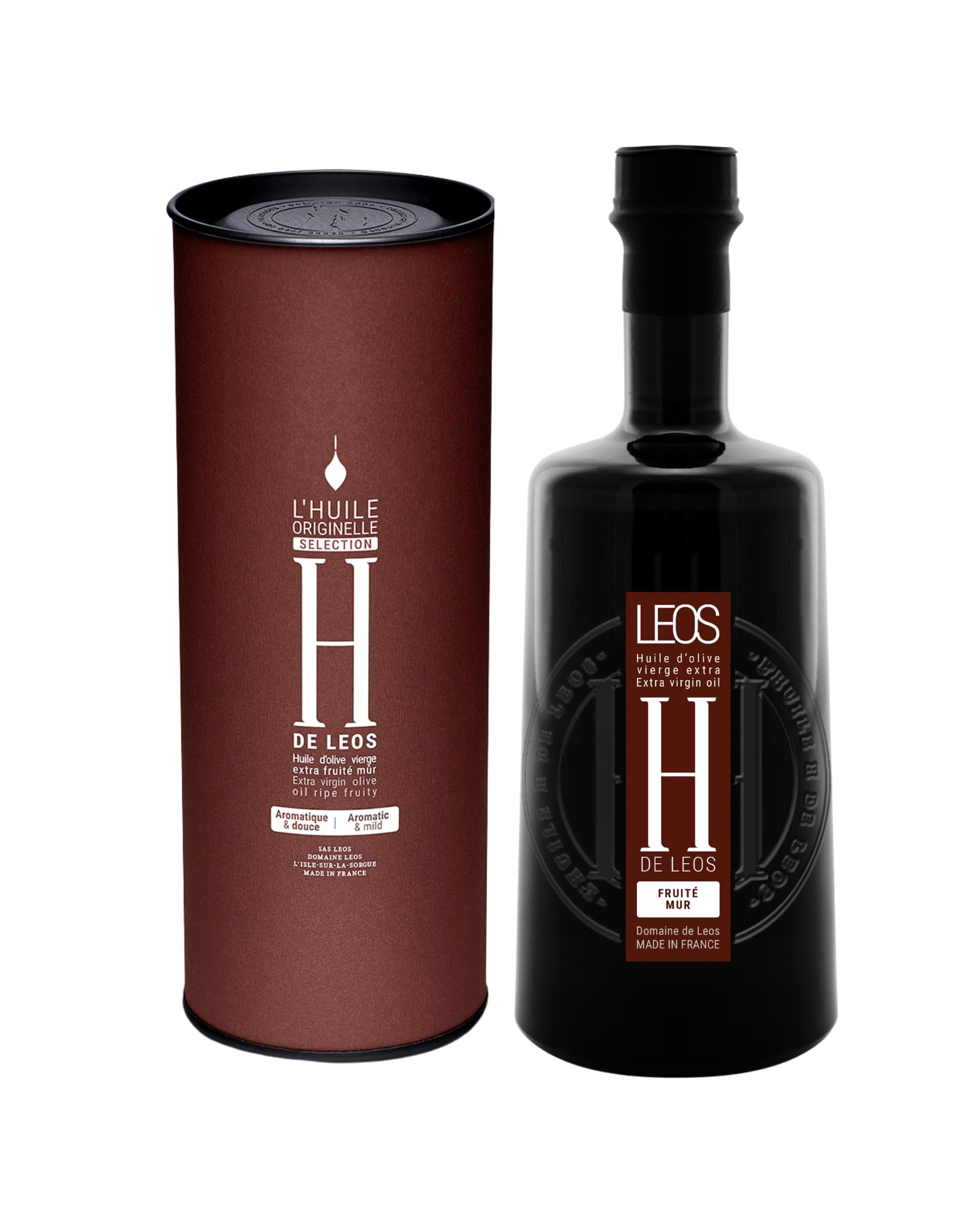 LEOS - Huile d'Olive Vierge Extra - H DE LEOS - Fruité Mûr - Multimedaillée - avec étui - Provence - Made in France (500ml)