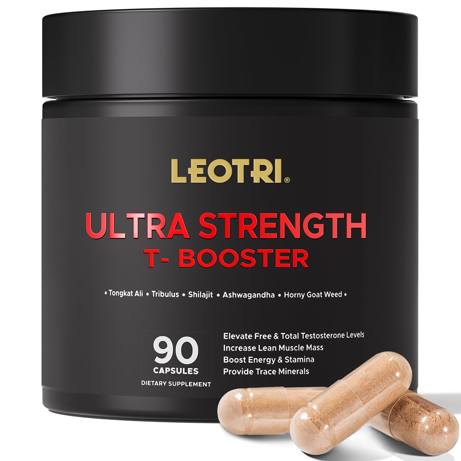 Leotri Ultra Strength T-Booster for Men: 23,900mg Herbal Blend with Tongkat Ali, Ashwagandha, Shilajit & More Supports Muscle Strength, Energy & Stamina 90 Capsules