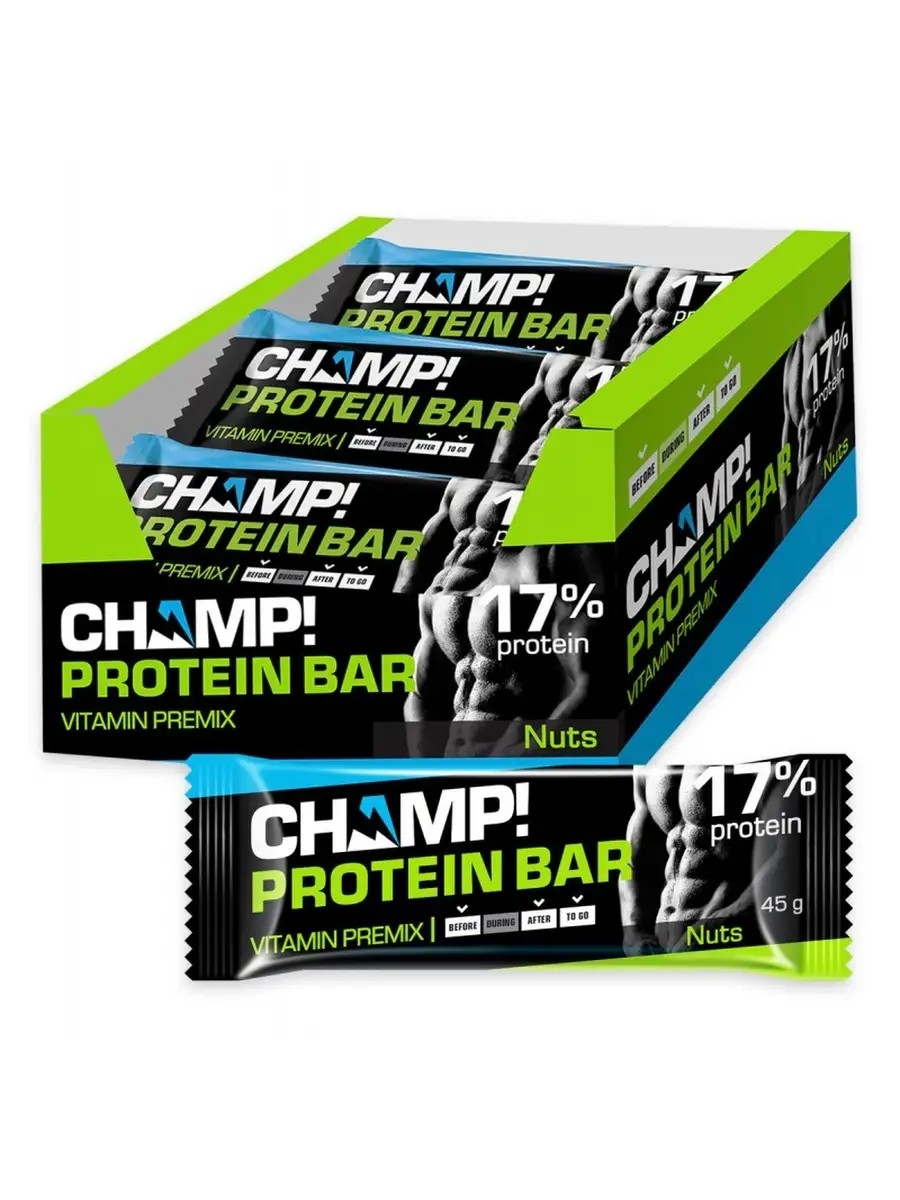 Батончик ореховый протеиновый Champ 18 шт в упаковке