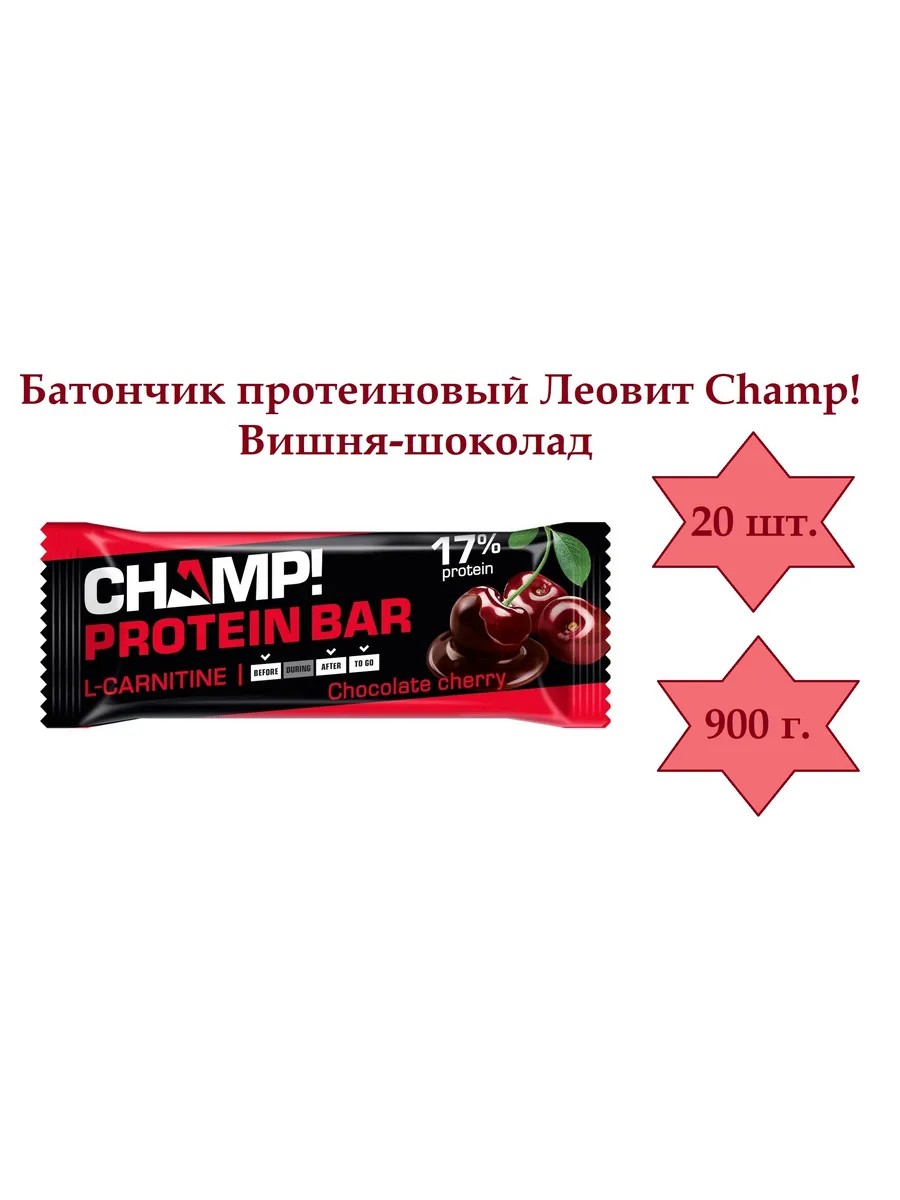 Полное наименование товараБатончик протеиновый Леовит Champ! Вишня-шоколад