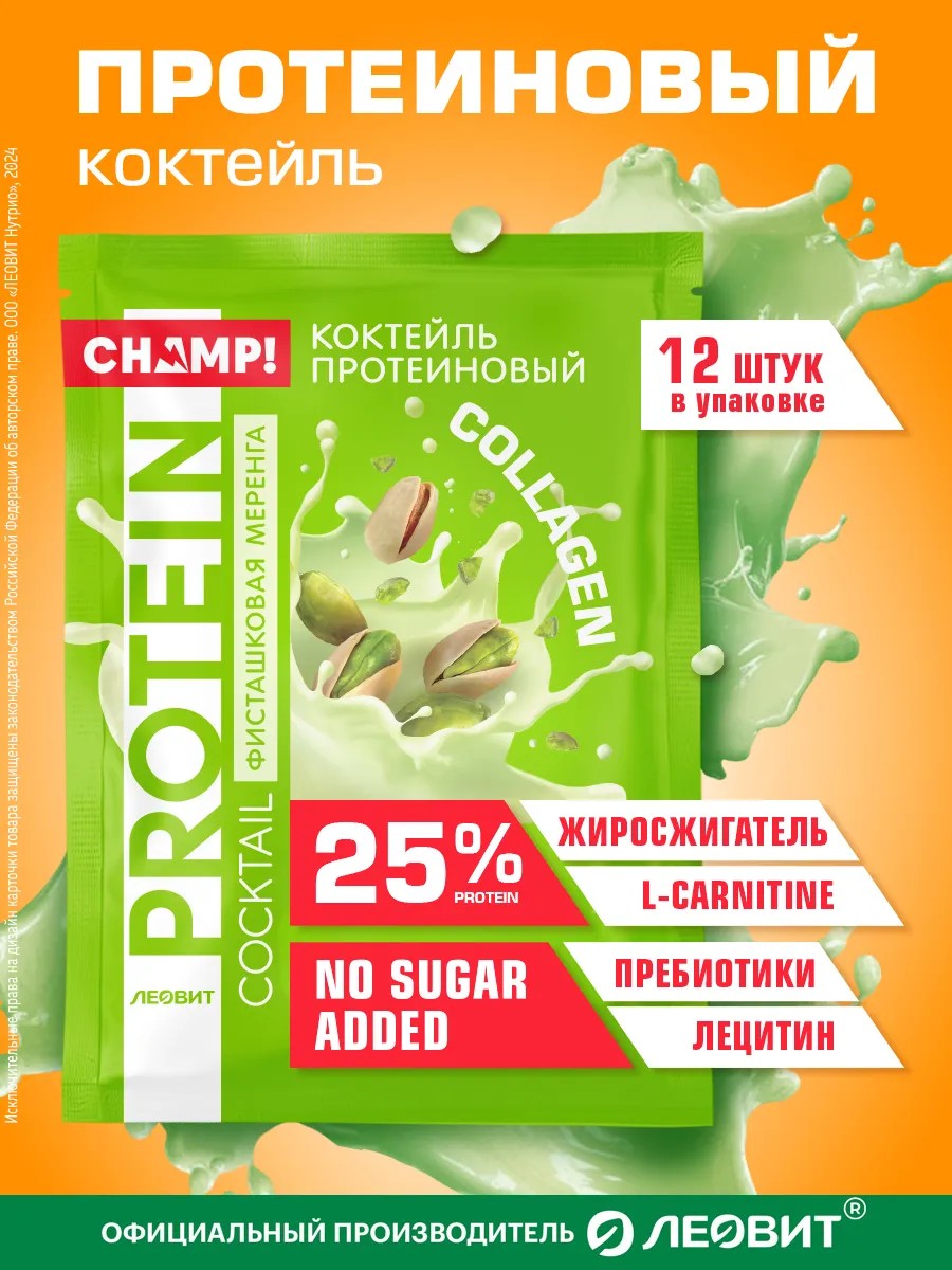 Коктейль протеиновый Фисташковая меренга Champ! 12 пакетов