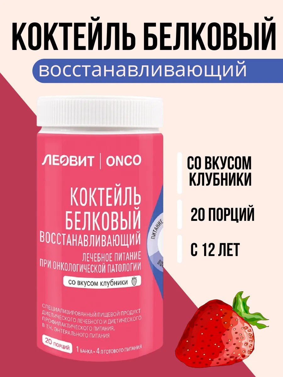 The protein recovery cocktail is recommended as a specialized food product for dietary therapeutic and dietary preventive nutrition, including for enteral nutrition (tube and oral use) for cancer patients: during treatment and rehabilitation (preoperative preparation, postoperative rehabilitation; during chemotherapy, immunotherapy, targeted therapy, and/or radiation therapy, between and after courses during rehabilitation), with cachexia, during remission, in palliative conditions, for adults and children over 12 years of age, with high protein and energy needs, for body restoration.