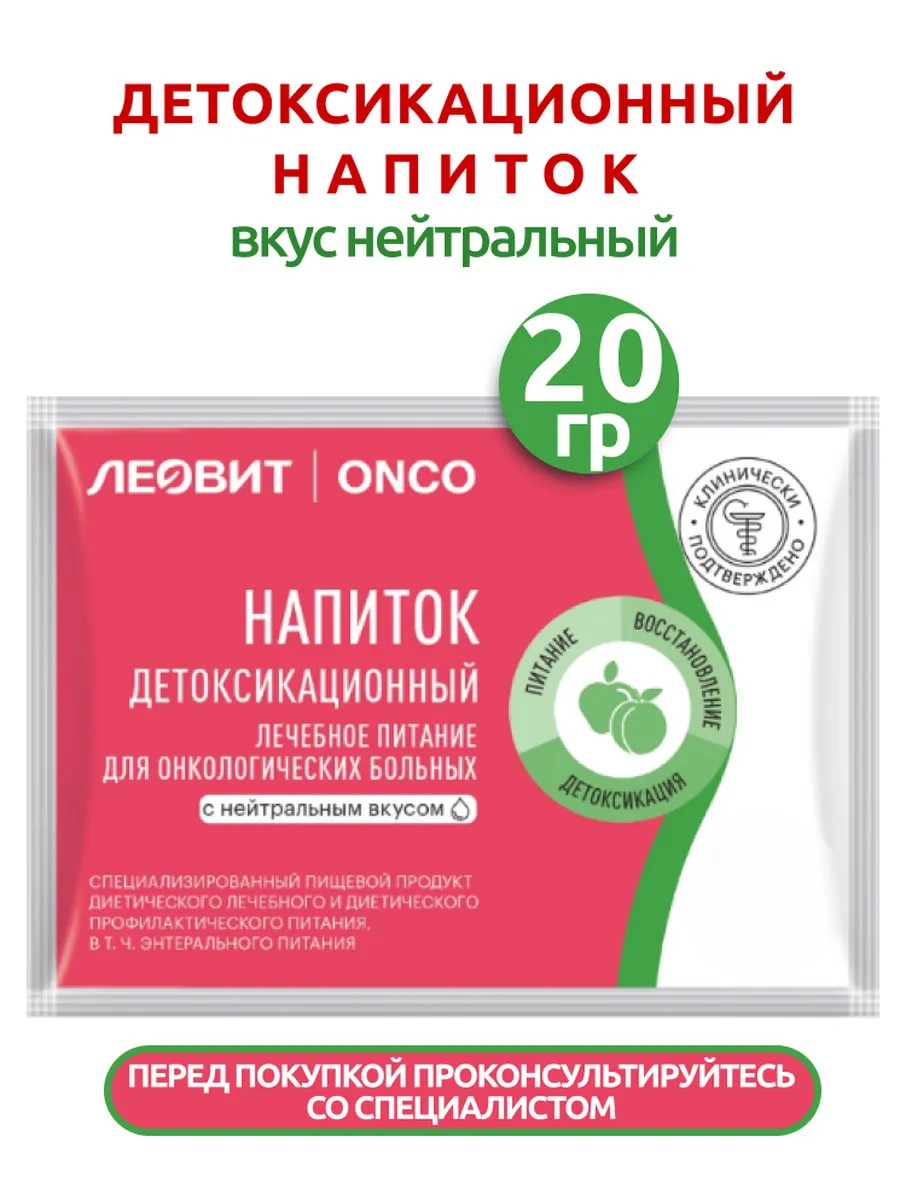 Леовит onco/онко напиток детоксикационный для онкологических больных с нейтральным вкусом - это специализированный пищевой продукт диетического лечебного и диетического профилактического питания, абсолютно новая форма нутритивной поддержки, которая разработана совместно с врачами онкологами для решения проблем питания и улучшения общего состояния онкологических больных, в том числе усугубляющимися в процессе лечения. Напиток снижает интоксикацию организма и окислительный стресс, обладает антиоксидантным, общеукрепляющим действием, поддерживает антитоксическую функцию печени, улучшает обмен веществ, физическое состояние пациентов, нормализует аппетит и способствует восстановлению роста волос. Питание ЛЕОВИТ ONCO рекомендовано: во время и после противоопухолевой терапии, после проведения операции по удалению опухоли , при затруднении прохождения пищи или нарушении всасывания питательных веществ, для предупреждения потери веса, сил и нарушения аппетита или нежелания принимать пищу.
