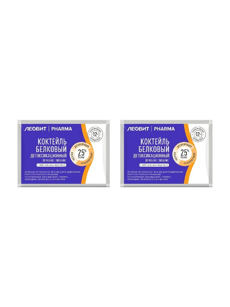 Leovit PHARMA/PHARMA Detoxification Protein Cocktail with neutral taste is a specialized cocktail containing proteins, vitamins, microelements, and biologically active substances and aimed at eliminating intoxication of the body and protein-energy malnutrition.