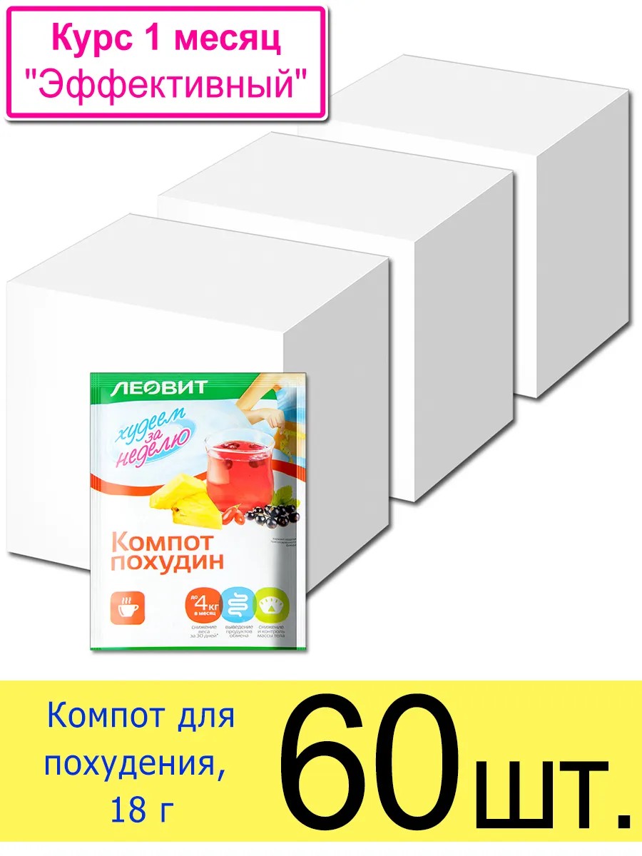 Компот "Похудин" Худеем за неделю, без сахара (с сахарозой) в пакетиках 18 г. Компот порционный «Похудин» ЛЕОВИТ для похудения – вкусный и полезный напиток. Приготовлен из ягод и фруктов, а также соков и пюре из них. Удобно взять с собой.