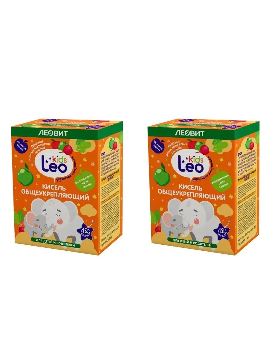 Бренд ЛеовитКисель общеукрепляющий - специализированный пищевой продукт диетического лечебного и диетического профилактического питания для детей раннего возраста от одного года (смесь сухая)Компоненты, входящие в состав оказывают противовирусное и противовоспалительное действие, укрепляет иммунитет, ускоряет сроки выздоровления, подходит для профилактики осложнений после ОРВИ и гриппаВвиду использования натуральных ингредиентов возможно наличие в готовом напитке осадка из мелких кусочков измельченных трав и фруктов.Пищевая ценность (средние значения) в 100 г сухого продукта / в одной порции (12 г) / % от суточной нормы:углеводы, г - 92,8/11,1/6,витамин С, мг - 400/48/107,витамин Е, мг - 30/3,6/90,цинк, мг - 30/3,6/72,энергетическая ценность, кДж (ккал) - 1600 (380)/192 (45)/3.Рекомендации по приготовлению: к содержимому пакета добавить 110-130 мл кипящей воды, тщательно перемешать, остудить до приемлемой температуры.Рекомендации по использованию:детям от 1 года до 3 лет - по 1/2 порции готового напитка 1-2 раза в день,детям от 3 до 7 лет - по 1 порции готового напитка 1-2 раза в день,детям старше 7 лет и взрослым - по 1 порции готового напитка 2-3 раза в день.На предприятии перерабатываются: арахис, кунжут, орехи, сельдерей, соя, молоко.