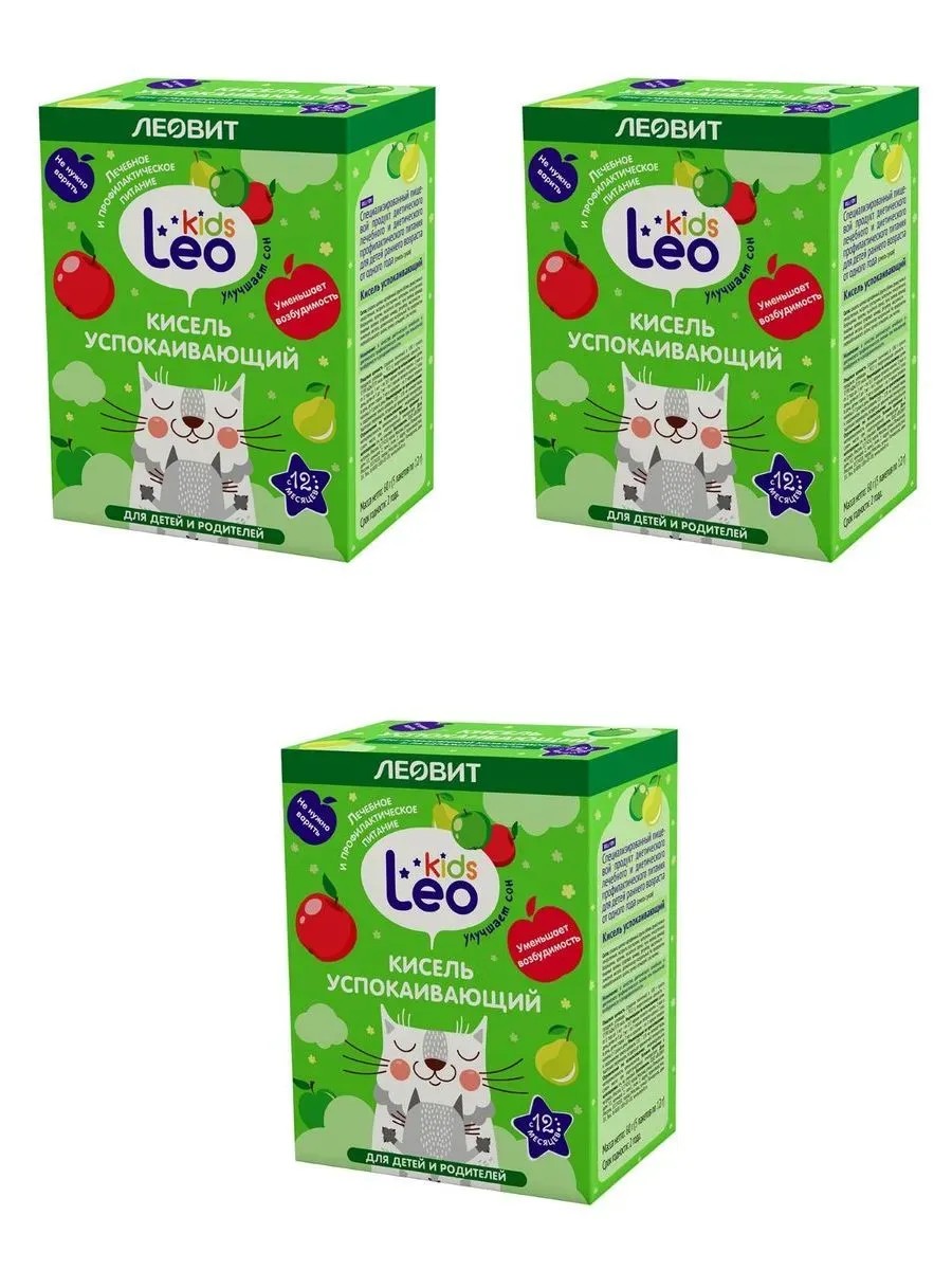 леовит leo kids кисель для детей успокаивающий 12,0 n5 пакет. в качестве специализированного пищевого продукта диетического лечебного и диетического профилактического питания для детей при повышенной возбудимости и раздражительности сахароза, крахмал картофельный, фрукты (яблоки, груши), мелисса лекарственная, экстракты (пустырника, валерианы лекарственной, боярышника, куркумы, мускатного ореха), мука овсяная, кориандр, пищевые волокна (гуаровая камедь), регулятор кислотности – лимонная кислота, ароматизатор натуральный