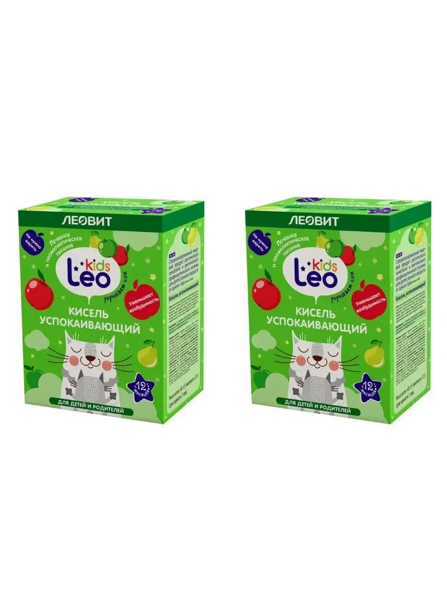 Бренд ЛеовитКисель успокаивающий - специализированный пищевой продукт диетического лечебного и диетического профилактического питания для детей раннего возраста от одного года (смесь сухая).Компоненты, входящие в состав оказывают успокаивающее и общеукрепляющее действие, уменьшает раздражительность, улучшает сон, уменьшает тревожность.Ввиду использования натуральных ингредиентов возможно наличие в готовом напитке осадка из мелких кусочков измельченных трав и фруктов. Пищевая ценность (средние значения) в 100 г сухого продукта:углеводы - 97,2 г,энергетическая ценность - 1590 кДж/370 ккал.Рекомендации по приготовлению: к содержимому пакета добавить 110-130 мл кипящей воды, тщательно перемешать, остудить до приемлемой температуры.Рекомендации по использованию:детям от 1 года до 3 лет - по 1/2 порции готового напитка 2 раза в день,детям от 3 до 7 лет - по 1 порции готового напитка 2 раза в день,детям старше 7 лет и взрослым - по 1 порции готового напитка 2-3 раза в день.На предприятии перерабатываются: арахис, кунжут, орехи, сельдерей, соя, молоко.