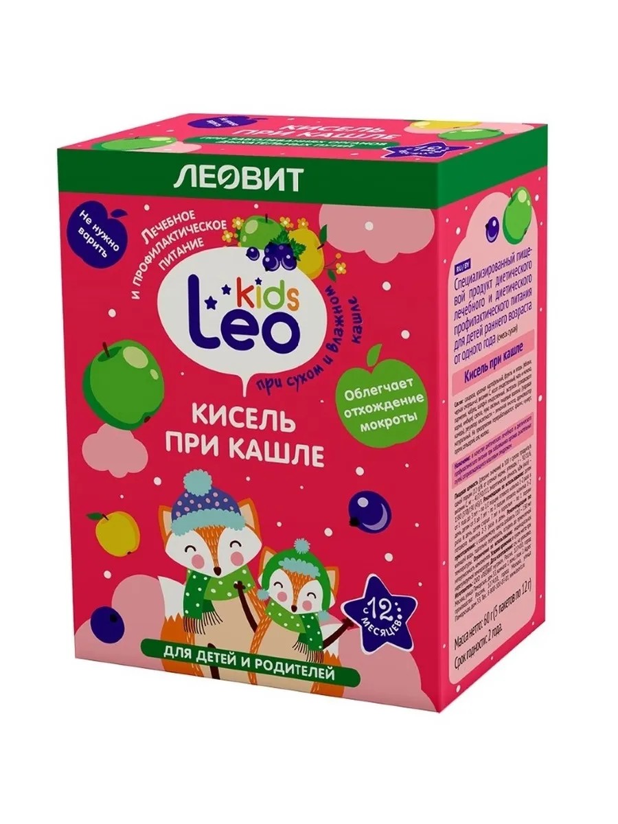 LEOVIT LEO KIDS KISEL FOR CHILDREN WITH COUGH is a specialized food product of dietary therapeutic and dietary preventive nutrition for children from one year old (dry powder)