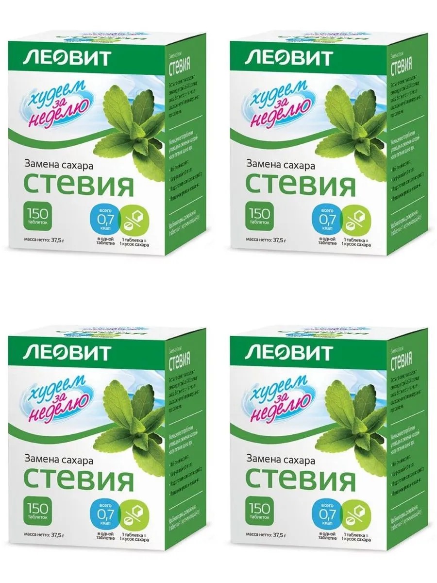 леовит худеем за неделю стевия n150 табл. 1 таблетка по сладости заменяет 4 г сахара пищевой продукт диетического профилактического питания декстроза, подсластитель стевия (экстракт листьев стевии), l-лейцин, стабилизатор (карбоксиметилцеллюлоза), агенты антислеживающие (кальция стеарат, диоксид кремния аморфный) бренд леовит - лидер на рынке производства продуктов питания для здоровья и похудения.
