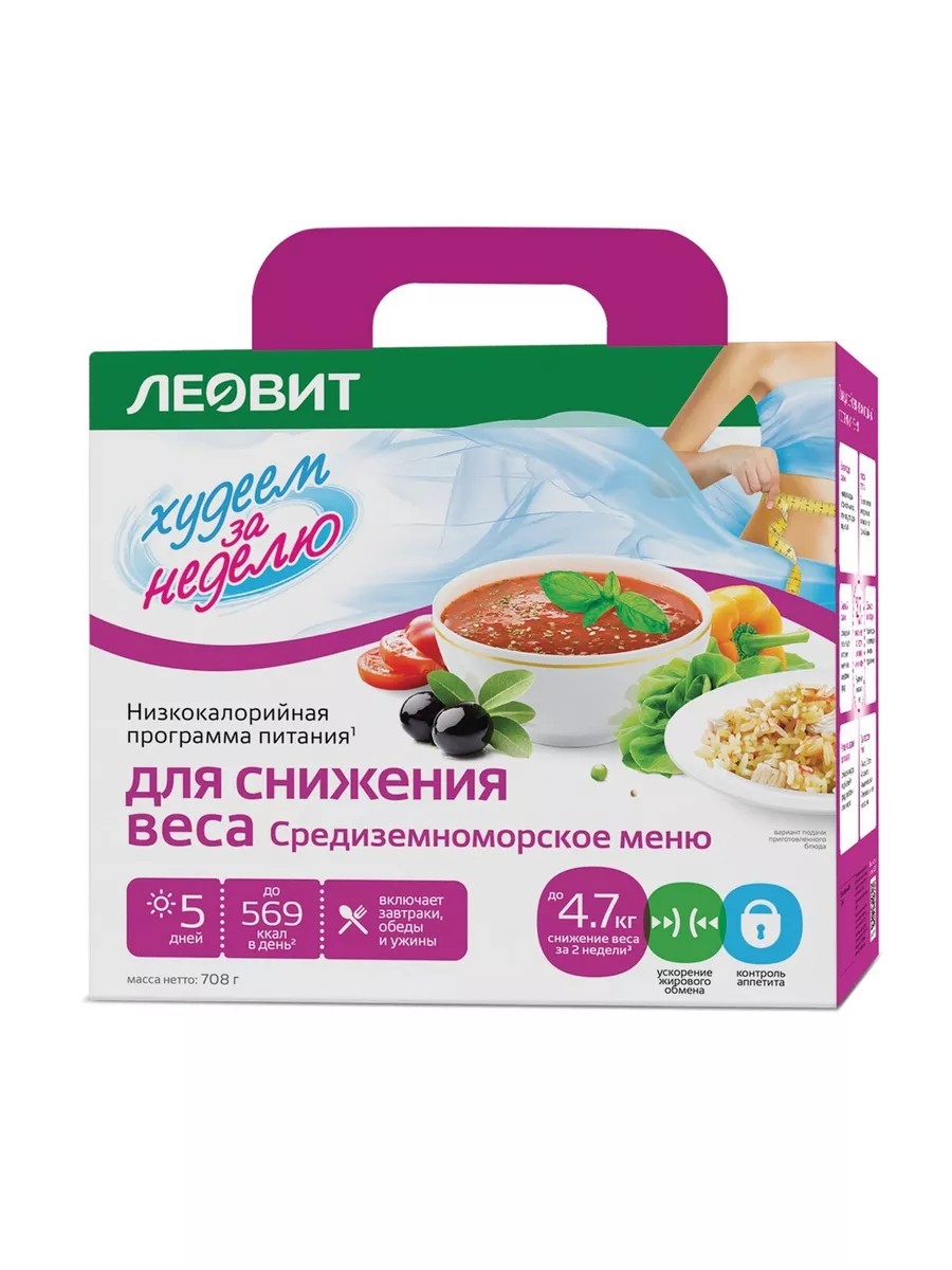 The Leovit weight loss kit is an effective product designed for fast and safe weight loss and weight control. The diet promotes detoxification and cleansing of the body, improving metabolism. A unique menu of 30 dishes and drinks allows you to achieve a slim figure and also detoxify the body.