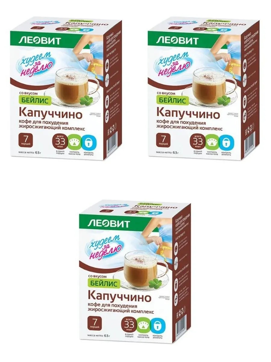 леовит худеем за неделю кофе д/похуд капуччино с бейлис n7 пак. способствует снижению и контролю массы тела для снижения риска развития ожирения и метаболического синдрома, ускорения жирового обмена, источник антиоксидантов заменитель сливок, декстроза, сахар, кофе натуральный растворимый, l-карнитина тартрат, аскорбиновая кислота, пряности, зеленого кофе экстракт, гарцинии камбоджийской экстракт