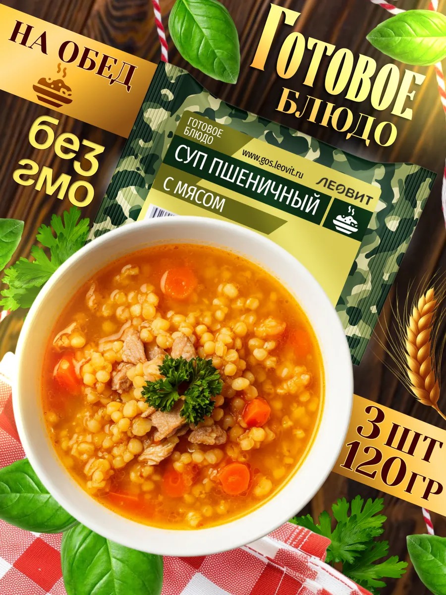 Суп пшеничный с мясом быстрого приготовления от леовит — это полноценное и вкусное готовое решение для питания в дороге или на природе. Готовый суп создан для удобного использования в походных условиях для еды в поход, поездках или при нехватке времени на приготовление еды. В основе быстрого супа натуральные ингредиенты, включая смесь для супа и нежное мясо. Суп в пакетике быстрого приготовления сохраняет свежесть и качество супа без необходимости хранения в холодильнике. Суп без варки быстро готовится: достаточно разогреть содержимое пакета. Это делает суп в кружке отличным выбором для туристического питания, еда готовая в поход , обедов на работе или перекуса во время путешествий и в поход. В упаковке находится сухая смесь, что обеспечивает легкость транспортировки и долговременное хранение. Подходит для тех, кто ищет быструю еду без лишних хлопот на быстрый обед. Блюдо не требует сложной варки, что особенно важно в полевых условиях. Сухой суп быстрого приготовления можно приготовить прямо в кружке или на костре за короткое время. Сублимированная еда процесс приготовления сохраняет все полезные свойства продуктов готовые обеды леовит.