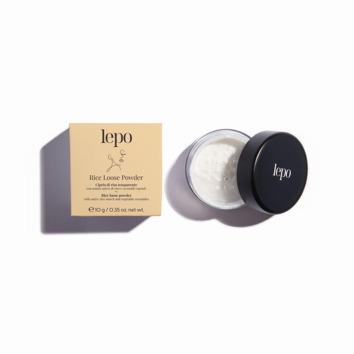 LEPO - Rice Loose Powder is a transparent rice powder, made with native rice starch and plant ceramides for a flawless, natural finish. With a silky texture, it offers a cosmetic solution with 99 naturally derived ingredients, combining effectiveness and naturalness for sublime skin. Applied after makeup, it extends makeup wear with an advanced, lightweight formula, ensuring a flawless result and a perfect finish. Suitable for all skin types, it neutralizes shine, minimizes pores, and provides a second-skin effect for a velvety, polished complexion. With over 30 years of experience, LEPO continues to offer natural and organic makeup and skincare products, in harmony with beauty and sustainability. HOW TO USE After completing your makeup, apply this powder to your face with a powder puff or brush for an even complexion. SAFETY WARNING For external use only. See moreLEPO: The Made in Italy brand that has been caring for beauty for over 30 years with natural and organic makeup and skincare products that are safe for the skin and in harmony with the planet. Second-skin effect: This translucent loose powder provides a soft, perfecting matte finish, suitable for all skin types. Its ultra-fine, silky texture prolongs makeup wear, neutralizing shine and minimizing pores for a flawless complexion. Application: After completing your makeup, apply this powder to your face with a powder puff or brush for an even complexion. Pat it on throughout the day for an extra matte effect or apply directly to oily skin to control excess sebum, keeping your makeup fresh and long-lasting. A versatile solution for a flawless finish anytime. Key ingredients: Native rice starch and plant ceramides blend harmoniously in this powder, offering a flawless, natural finish. The lightweight formula promotes velvety-smooth skin, making it a must-have for a flawless complexion. Properties: With its silky texture, this powder gives the face a velvety feel, prolonging makeup wear and neutralizing shine and imperfections. Made with 99 naturally derived ingredients, it offers a cosmetic solution that combines effectiveness and naturalness, for sublimely beautiful skin. Its advanced formula makes application a pleasure, ensuring a flawless finish all day long.LEPO Poudre de riz lâche, poudre de riz transparente avec amidon natif de riz et céramides végétales pour une finition irréprochable et naturelleDESCRIPTION DU PRODUIT DESCRIPTION DU PRODUIT LEPO - Rice Loose Powder est une poudre de riz transparent, avec de l'amidon natif de riz et des céramides végétales pour une finition impeccable et naturelle. Avec une texture soyeuse, il offre une solution cosmétique avec 99 d'ingrédients d'origine naturelle, alliant efficacité et naturel pour une peau sublime. Applicable après le maquillage, prolongez la tenue du maquillage avec une formule avancée et légère, assurant un résultat impeccable et une finition parfaite. Convient à tous les types de peau, neutralise les zones brillantes, minimise les pores et offre un effet second skin pour un teint velouté et soigné. La marque LEPO, avec plus de 30 ans d'expérience, continue à proposer des produits de maquillage et de soins naturels et biologiques, en harmonie avec la beauté et la durabilité. MODE D'EMPLOI Après avoir terminé le maquillage, appliquez cette poudre sur le visage avec la couette ou la brosse à poudre pour un teint uniforme. AVERTISSEMENT DE SÉCURITÉ Usage extérieur uniquement. Voir plusLEPO: La marque Made in Italy qui prend soin de la beauté depuis plus de 30 ans avec des produits de maquillage et de peau naturels et biologiques, sans danger pour la peau et en harmonie avec la planète. Effet seconde peau : poudre transparente en poudre libre qui donne un fini doux mat perfectionnant, adapté à tous les types de peau. Sa texture ultra fine et soyeuse prolonge la tenue du maquillage, neutralisant les zones brillantes et minimisant les pores pour un teint impeccable. Application : après avoir terminé le maquillage, appliquez cette poudre sur le visage avec la couette ou le pinceau à poudre pour un teint uniforme. Tamponnez pendant la journée pour un effet extra mat ou appliquez directement sur la peau huileuse pour contrôler l'excès de sébum, tout en gardant le maquillage frais et durable. Une solution polyvalente pour une finition impeccable à tout moment. Actifs principaux : l'amidon natif de riz et les céramides végétales se marient harmonieusement dans cette poudre, offrant une finition impeccable et naturelle. La formulation légère favorise une peau veloutée et soyeuse, ce qui en fait un must-have pour un teint impeccable. Propriétés : avec une texture soyeuse, cette poudre apporte un toucher velouté au visage, prolongeant la tenue du maquillage et neutralisant les zones brillantes et les imperfections. Avec 99 d'ingrédients d'origine naturelle, il offre une solution cosmétique qui allie efficacité et naturel, pour une peau sublime et soignée. Sa formule avancée rend l'application agréable, assurant une finition impeccable tout au long de la journée.