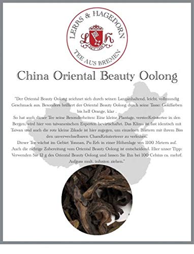 DESCRIPTION DU PRODUIT L'Oolong d'Oriental Beauty se caractérise par sa longue durée de vie, sa légèreté et son goût bouché. L'Oriental Beauty Oolong brille particulièrement par sa tasse : de couleur or à orange clair, transparent. Ainsi, ce thé a également ses particularités : une petite plantation, une infusion dans les montagnes, est gérée par des experts taïwanais. Le climat est presque identique à celui de Taïwan et la petite cigue rouge est ici pour donner à chaque feuille une infusion de chara unique avec sa morsure le thé Chara. Ce thé pousse dans la région Yunnan, Pu-Erh dans une hauteur de 1100 mètres. La bonne préparation de l'Oolong est également essentielle. Notre conseil : utilisez 12 g de l'Oolong Oriental Beauty et laissez-le sécher à 100 C environ Plusieurs Infusion mult. Infusion.
