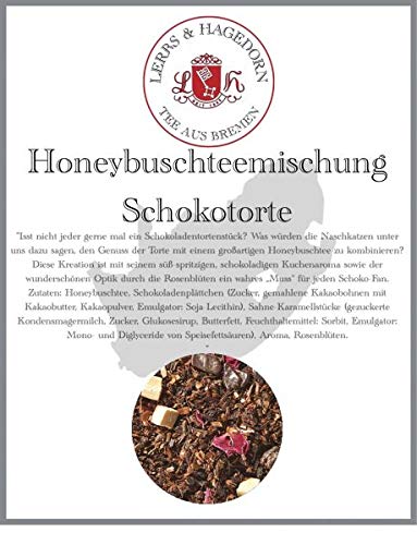 Not everyone loves chocolate cake, right? How about combining the pleasure of cake with a delicious honey tea? This creation is a true must-have for all chocolate lovers, with its sweet, sparkling cake aroma and beautiful rose petal appearance. Ingredients: Honey tea, chocolate wafers (sugar, ground cocoa beans with cocoa butter, emulsifier: soy lecithin), caramel pieces (sugar, condensed milk sugar, glucose syrup, butterfat, humectant: sorbitol, emulsifier: mono- and diglycerides of fatty acids), flavoring, rose petals.Mélange de thé au miel - 1 kg de chocolat vanilleDESCRIPTION DU PRODUIT Tout le monde n'aime pas manger un gâteau au chocolat ? Que diraient les chats d'entre nous de combiner le plaisir du gâteau avec un superbe thé au miel ? Cette création est un véritable must pour tous les fans de chocolat avec son arôme de gâteau sucré, pétillant, et son magnifique aspect de pétales de roses. Ingrédients : thé de miel, plaquettes de chocolat (sucre, fèves de cacao moulues avec du beurre de cacao, émulsifiant : lécithine de soja), morceaux de caramel (sucre. Lait de condensation Sucre, sirop de glucose, graisse au beurre, agent humectant : sorbit, émulsifiant : mono et diglycérides d'acides gras alimentaires), arôme, pétales de rose.