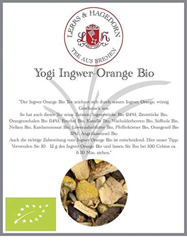 Organic Chaitee Ginger Orange is distinguished by its ginger, orange, and spicy flavor. This tea has its own unique characteristics: a true classic that should be in every Ayurvedic tea collection. The delicate orange notes harmonize perfectly with the spicy ginger and fennel. Juniper berries and angelica root lend the flavor a unique character, while sweet chamomile and licorice create the perfect combination and harmoniously complement the blend. Proper preparation of Organic Chaitee Ginger Orange is also essential. Here is our advice: use 10 to 12 g of Organic Chaitee Ginger Orange and let it steep at approximately 100 C for 6 to 10 minutes. Ingredients: Organic ginger pieces (24 ), organic cinnamon pieces, organic orange peel (14 ), organic fennel, organic chamomile, organic juniper berries, organic licorice, organic cloves, organic cardamom seeds, organic dandelion leaves, organic black peppercorns, organic orange oil (2 ), organic angelica rootLerbs Hagedorn, Chaitee Gingembre orange bio gingembre, orange, épicé 1 kg env. (81 litres) morceaux de gingembre bio, morceaux de cannelle bio, écorces d'orange bioDESCRIPTION DU PRODUIT Le Chaitee Gingembre Orange Bio se distingue par son goût gingembre, orange, épicé. Ainsi, ce thé a également ses particularités : un véritable classique qui ne doit manquer dans aucune gamme ayurvédique. Les fines notes d'orange s'harmonisent parfaitement avec le gingembre et le fenouil épicés. Les baies de genièvre et la racine d'angélique dirigent le goût vers une variété unique, la camomille douce et la réglisse créent la combinaison parfaite et complètent harmonieusement le mélange.. La bonne préparation du Chaitee Gingembre-Orange Bio est également essentielle. Voici notre conseil : utilisez 10 à 12 g de Chaitee Gingembre Orange Bio et laissez-le à 100 C environ 6 à 10 minutes. tirer. Ingrédients : morceaux de gingembre bio (24 ), morceaux de cannelle bio, écorces d'orange bio (14 ), fenouil bio, camomille bio, baies de genévrier bio, réglisse bio, clou de girofle bio, graines de cardamome bio, feuilles de pissenlit biologiques, grains de poivre noir bio, huile d'orange bio (2 ), racine d'angélique bio