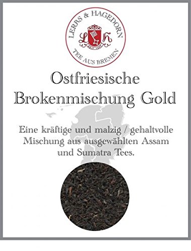 Lerbs Hagedorn's East Frisian Broken Gold Blend is an excellent choice for those who prefer a strong and rich tea. This carefully selected blend of Assam and Sumatra teas offers an intense aroma with a malty flavor. The tea's golden color is an indicator of its quality and purity. Enjoy the full-bodied flavor of this traditional East Frisian blend, perfect for any occasion. Try Lerbs Hagedorn's East Frisian Broken Gold Blend now and discover the true taste of East Frisia. A powerful and malty rich blend of selected Assam and Sumatra teas.