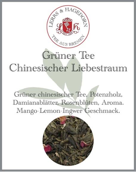 Lerbs Hagedorn, Thé vert Rêve d'amour chinois Goût mangue-citron gingembre 250 g (env. 20 litres) pétales de rose