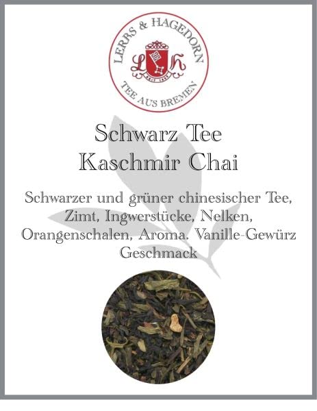 Lerbs Hagedorn, Chai de thé noir Cachemire Saveur vanille épice 250 g (environ 20 litres) cannelle, morceaux de gingembre, clous de girofle