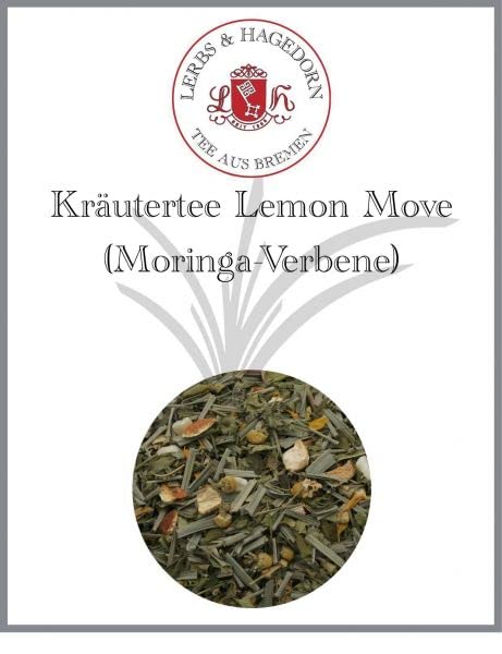 A flavorful herbal tea with a delicate lemon aroma. This herbal tea has a wonderfully fresh and lemony taste. Lemongrass, moringa leaves, and verbena herb are combined with chamomile flowers, orange peel, and sunflower blossoms. Sweet mango cubes add a touch of sweetness to the tea. The selection and combination of ingredients make this tea unique. You have here a truly well-balanced wellness tea. The smooth tea with fruity citrus aromas and the pleasant sweetness of mango is a treat at any time of day. It has a warm taste with a hint of honey. Chilled or as iced tea, it's a refreshing treat for hot summer days. Ingredients: lemongrass, moringa leaves, verbena, mango cubes (mango, sugar), chamomile flowers, orange peel, sunflower blossoms.Lerbs Hagedorn, Lemon Move (verveine de Moringa) 1 kg (env. 81 litres) citronnelle, feuilles de moringa, verveine, cubes de mangueDESCRIPTION DU PRODUIT Tisane savoureuse avec un arôme doux de citron La tisane a un goût merveilleusement frais et citronné. La citronnelle, les feuilles de moringa et l'herbe de verveine sont ici combinées avec des fleurs de camomille, des écorces d'orange et des fleurs de tournesol. Les cubes de mangue sucrés apportent une légère douceur au thé. La sélection et la combinaison des ingrédients rendent ce thé unique. Vous avez donc ici un vrai thé de bien-être équilibré en goût. Le thé doux aux arômes fruités d'agrumes et à la douceur agréable de la mangue est un régal à tout moment de la journée. Il a un goût chaud avec un peu de miel. Refroidi et comme thé glacé, c'est un bon rafraîchissement pour les journées chaudes en été. Ingrédients : citronnelle, feuilles de moringa, verveine, cubes de mangue(mangue, sucre), fleurs de camomille, écorces d'orange, fleurs de tournesol.