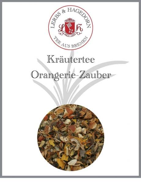 For a magical treat - Refreshing and fruity - Enjoy a cup of Magic Orangery herbal tea and let yourself be seduced by a dreamy taste experience. Like a Mediterranean summer dream, this carefully prepared tea pampers your senses - light and easy to digest. Apples, blackberries, oranges, and other ingredients caress your senses. Fruits, herbs, and flowers - a wonderful combination of wholesome fruits, invigorating herbs, and salty flowers creates a revitalizing blend. The versatile Magic Orangery herbal tea tastes great at any time of day and evokes beautiful memories of the south. As if kissed by the sun - that's what you feel with every pleasant sip of this wonderful Orangery herbal tea. Ingredients: orange peel, apple pieces, blackberry leaves, orange blossoms, peppermint leaves, safflower blossoms, sunflower blossoms.Lerbs Hagedorn, Tisane Magie d'orangerie 1 kg (env. 81 litres) Feuilles de mûre, fleurs d'oranger, feuilles de menthe poivréeDESCRIPTION DU PRODUIT Pour un plaisir magique - Rafraîchissant et fruité - Profitez d'une tasse de tisane magique d'orangerie et laissez-vous séduire par une expérience gustative de rêve. Comme un rêve d'été méditerranéen, ce thé soigneusement préparé dorlote vos sens - léger et digeste. Les pommes, les mûres et les oranges et d'autres ingrédients caressent vos sens. Fruits, herbes et fleurs - une excellente combinaison de fruits sains, d'herbes revigorantes et de fleurs salées créent une combinaison vitalisante. La tisane polyvalente Magie d'orangerie a un goût à tout moment de la journée et évoque de beaux souvenirs du sud. Comme embrassé par le soleil - c'est ce que vous ressentez à chaque gorgée agréable de cette merveilleuse tisane à l'Orangerie. Ingrédients: écorces d'orange, morceaux de pomme, feuilles de mûre, fleurs d'oranger, feuilles de menthe poivrée, fleurs de carthame, fleurs de tournesol.