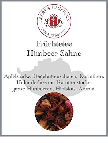 "Raspberry and its raspberry Kumpanen tea? Absolutely! With this blend, it reigns supreme, gathering its court around it. It includes pieces of apple, rosehip peel, and delicate currants. The potpourri also features fragrant elderberries and contrasting carrot pieces. What more could you ask for? This intriguing combination offers a truly rich and flavorful tea. The whole raspberries are a visual and delicious delight. Summer returns in all its intensity and sweetness, straight to your steaming cup. Ingredients: apple pieces, rosehip peel, currant, elderberries, carrot pieces, raspberries, hibiscus, flavoring."Lerbs Hagedorn, Thé aux fruits de la crème framboise 1 kg (environ 50 litres) de pommes de terre, de cynornorrhodon, de corinthes, de baies de sureauDESCRIPTION DU PRODUIT « La framboise et son thé Kumpanen à la framboise ? Mais oui. Avec ce mélange, elle est même la reine qui rassemble son État de la cour autour d'elle. Cela comprend des morceaux de pomme, mais aussi des écorces d'églantier et des corinthes fins. Le pot-pourri se trouve encore des baies de sureau qui sentent si délicieusement et des morceaux de carotte qui représentent le contraste. Que demander de plus - Thé avec beaucoup de teneur en quantité Vous pouvez boire grâce à cette combinaison intéressante. Les framboises entières sont à la fois visuellement et savoureusement une vraie splendeur. Ainsi, l'été revient avec sa pleine puissance et sa douceur, directement dans votre tasse vapeur. Ingrédients : morceaux de pomme, écorces de cynorrhodon, corinthe, baies de sureau, morceaux de carotte, framboises, hibiscus, arôme.