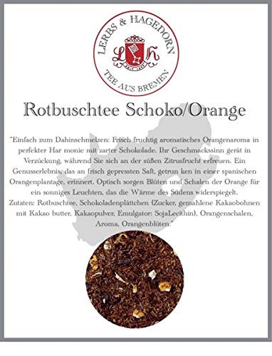 Lerbs Hagedorn, Thé roibusch chocolat orange goût chocolat fruité et orange 1 kg (environ 81 litres) avec plaquettes de chocolat, zeste d'orange
