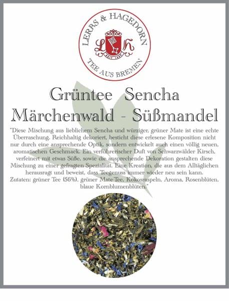 Lerbs Hagedorn, Thé vert Sencha Forêt de contes de fées Charmant épicé 1 kg (environ 81 litres) avec thé vert maté, noix de coco, roses et bleuets