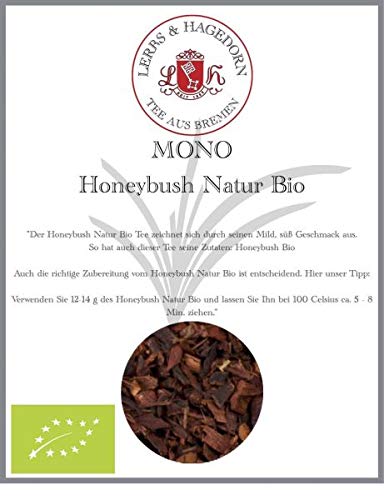 DESCRIPTION DU PRODUIT Le thé bio naturel Honeybush se distingue par sa douceur et son goût sucré. Ainsi, ce thé a également ses ingrédients : Honeybush Bioo. La bonne préparation du Honeybush Natur Bio est également essentielle. Notre conseil : utilisez 12-14 g de Honeybush naturel bio et laissez-le sécher à 100 C environ 5-8 min. tirer dessus.