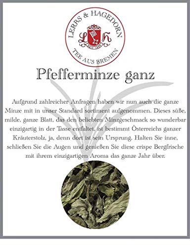 DESCRIPTION DU PRODUIT En raison de nombreuses demandes, nous avons également inclus toute la menthe dans notre gamme standard. Cette jolie feuille entière, douce, qui déploie le goût de menthe populaire si merveilleusement unique dans la tasse est sans aucun doute fierté de l'Autriche des herbes entières, oui, car elle y est origine. Restez à l'intérieur, fermez les yeux et profitez de cette fraîcheur crispe tout au long de l'année.